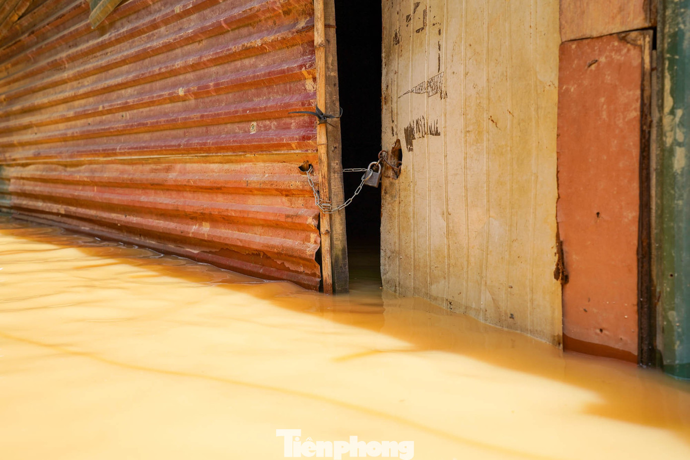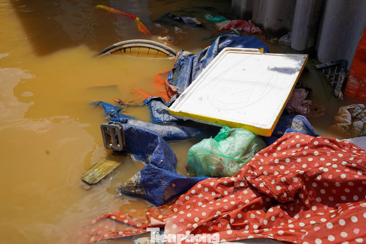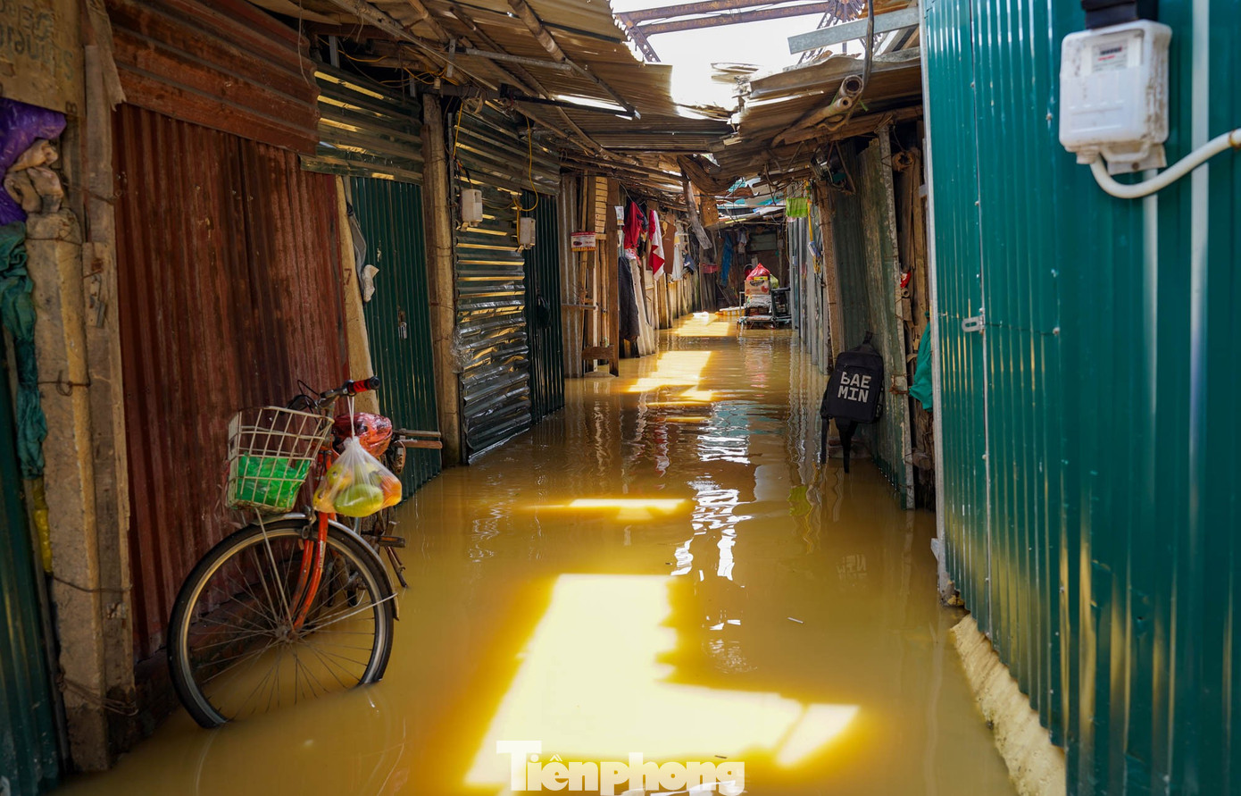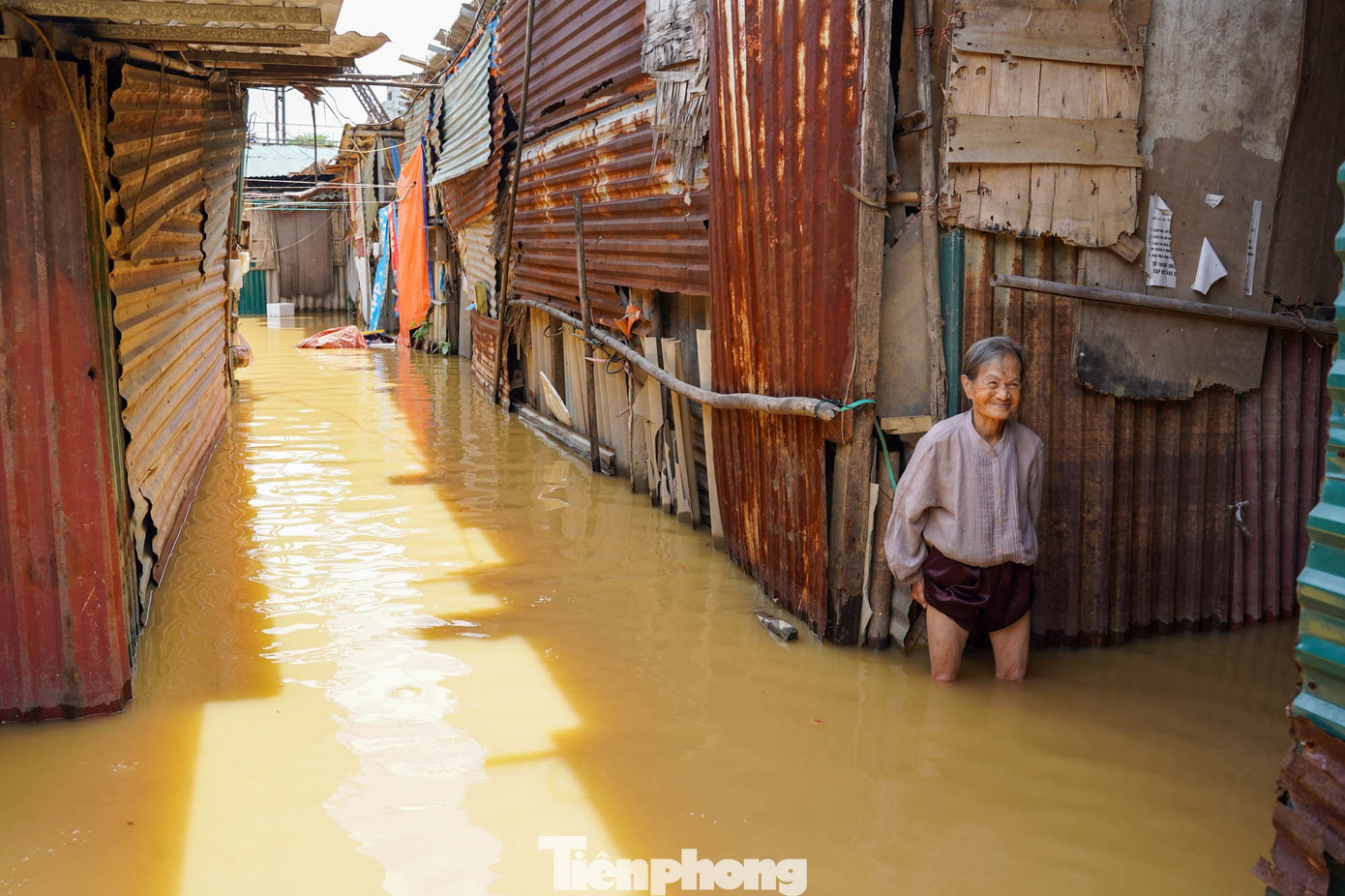 Khu dân cư dưới chân cầu Long Biên ngập gần tới mái nhà.