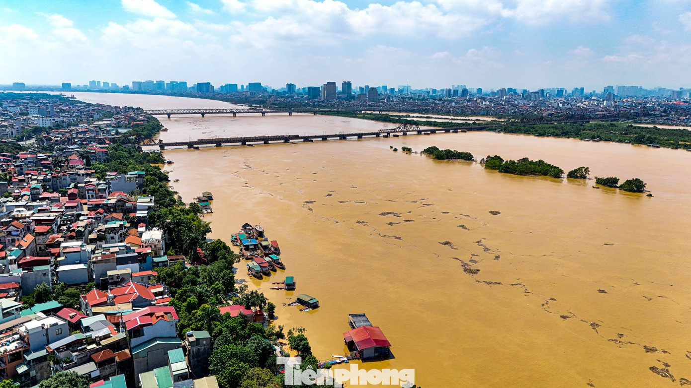 Do ảnh hưởng áp thấp nhiệt đới từ bão số 10, nhiều tỉnh phía Bắc mưa to liên tục trong hai ngày 29-30/9, khiến mực nước sông Hồng dâng nhanh. Quan sát sáng 2/10, khu dân cư ven sông Hồng như bị nhấn chìm trong nước.