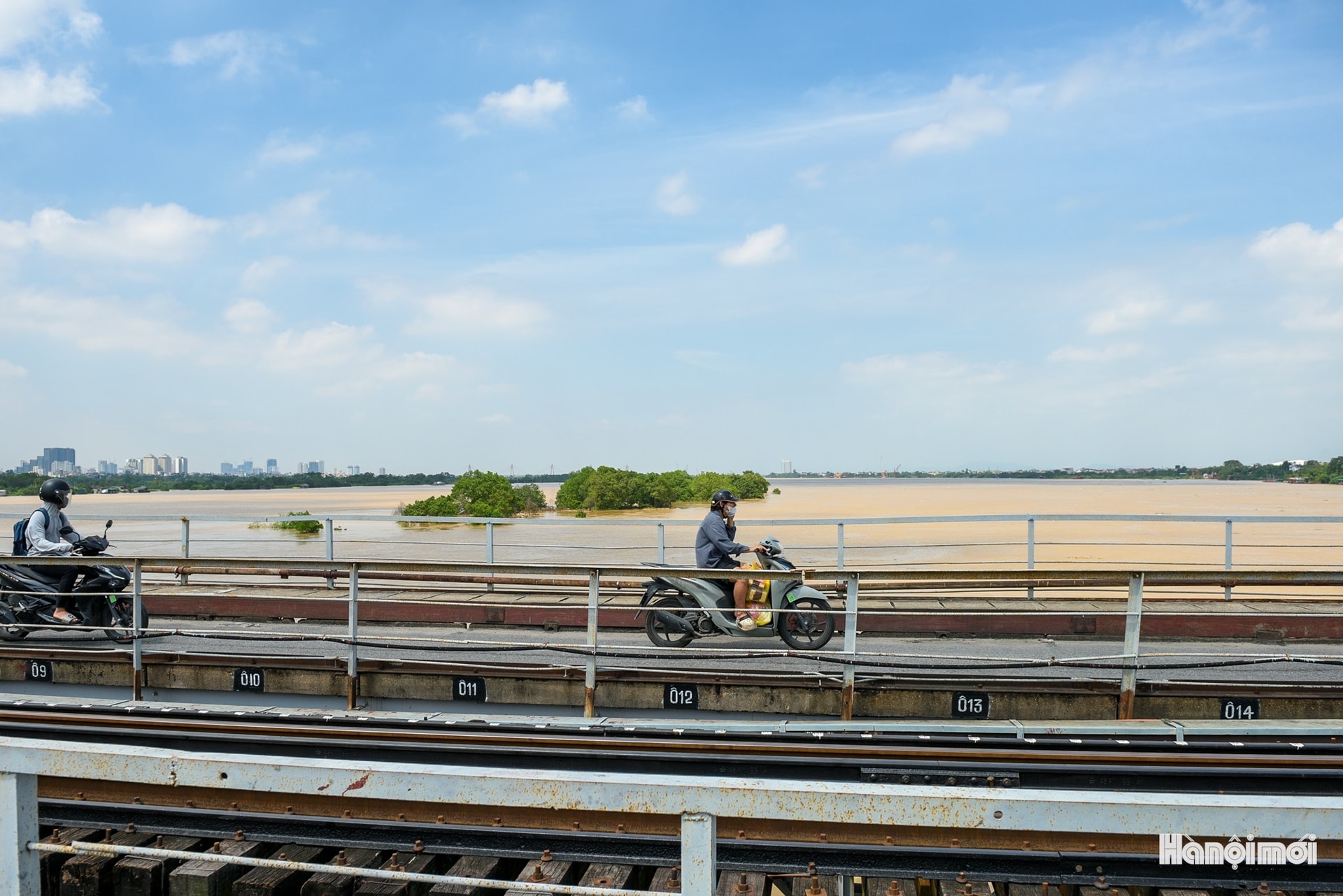 Ảnh hưởng sau bão số 10 (Bualoi) và mưa từ thượng nguồn đổ vể, mực nước sông Hồng đoạn qua Hà Nội dâng cao.