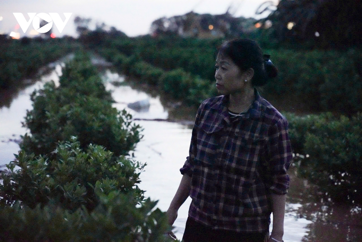 Bà Nguyễn Thị Khuôn, người trồng đào ven cầu Nhật Tân, trận bão số 10 này quá nguy hiểm, hôm trước mưa đến hôm sau nước dâng nhanh quá, tôi chỉ kịp mang theo mấy bộ quần áo. Chiều nay tôi định quay lại lấy thêm đồ, mà ngập cao quá, không tìm nổi đồ. "Năm ngoái bão Yagi làm mất trắng 7 sào quất, 3 sào đào và hơn một mẫu chuối. Cứ ngỡ năm nay sẽ gỡ gạc lại được, vậy mà... Thế này mất Tết, mất hết công sức cả năm rồi".
