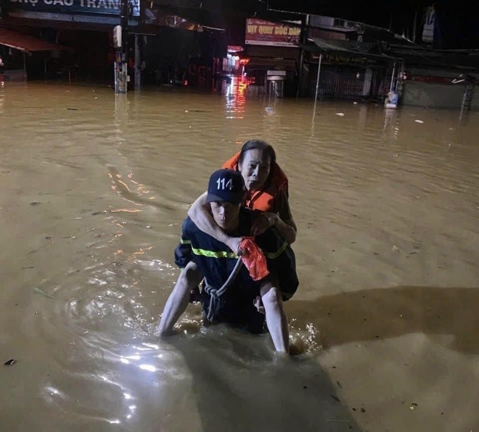 Nhiều cán bộ, chiến sĩ không quản hiểm nguy, dầm mình trong nước lũ cõng người già, bế trẻ nhỏ, dìu đỡ phụ nữ… đến nơi tránh trú an toàn, giúp bà con di chuyển đồ đạc, tài sản, hạn chế thấp nhất thiệt hại do thiên tai gây ra.