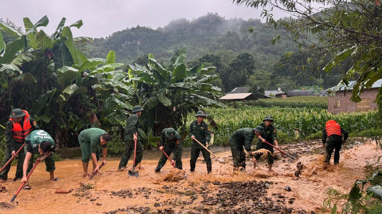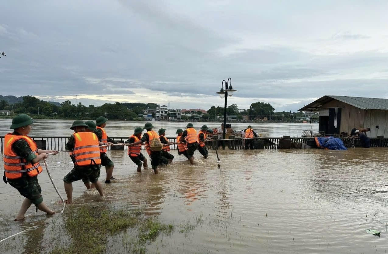 Các chiến sĩ quân đội (Bộ Chỉ huy quân sự tỉnh Tuyên Quang) phối hợp cùng lực lượng chức năng của tỉnh hỗ trợ người dân di chuyển tài sản, người ra địa điểm an toàn.