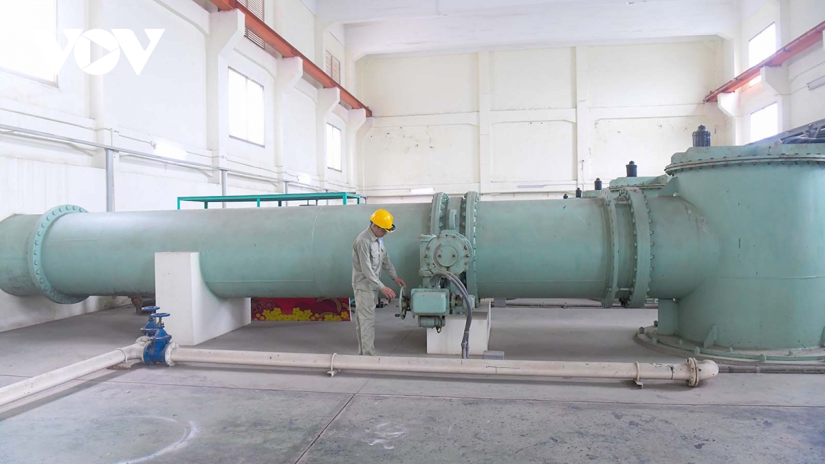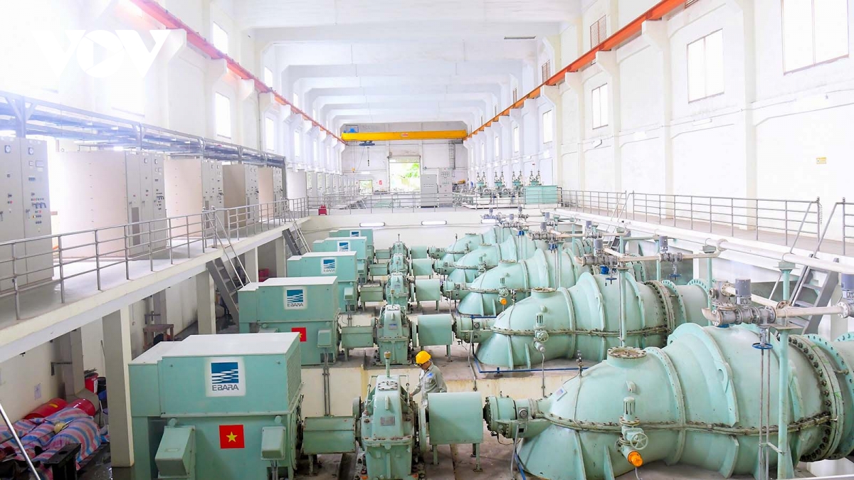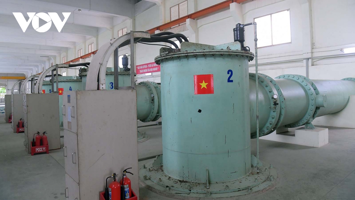 Hệ thống máy của trạm bơm Yên Sở hoạt động hết công suất với tốc độ 90 mét khối nước trên giây.