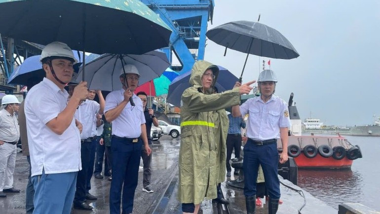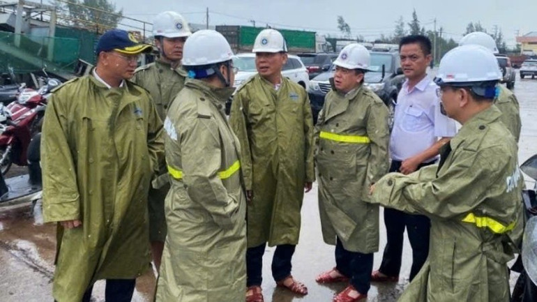 Cục trưởng Hàng hải và Đường thủy Việt Nam Lê Đỗ Mười (người mặc áo mưa) trực tiếp chỉ đạo công tác ứng phó bão số 10.
