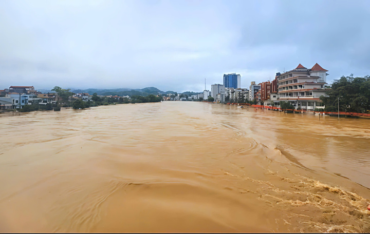 Sông Bằng Giang vượt báo động III tới 2,72m, đồng thời, cao hơn đỉnh lũ lịch sử năm 1986 là 0,38m. (Ảnh: La Tuấn).