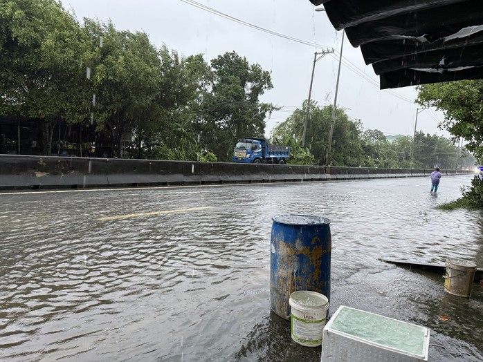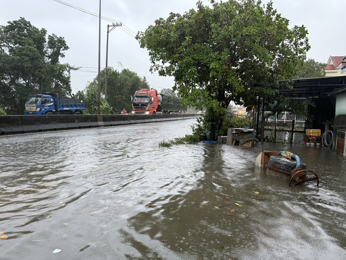Nước lũ tràn qua Quốc lộ 1 đoạn dần xuống KCN Tam Thăng