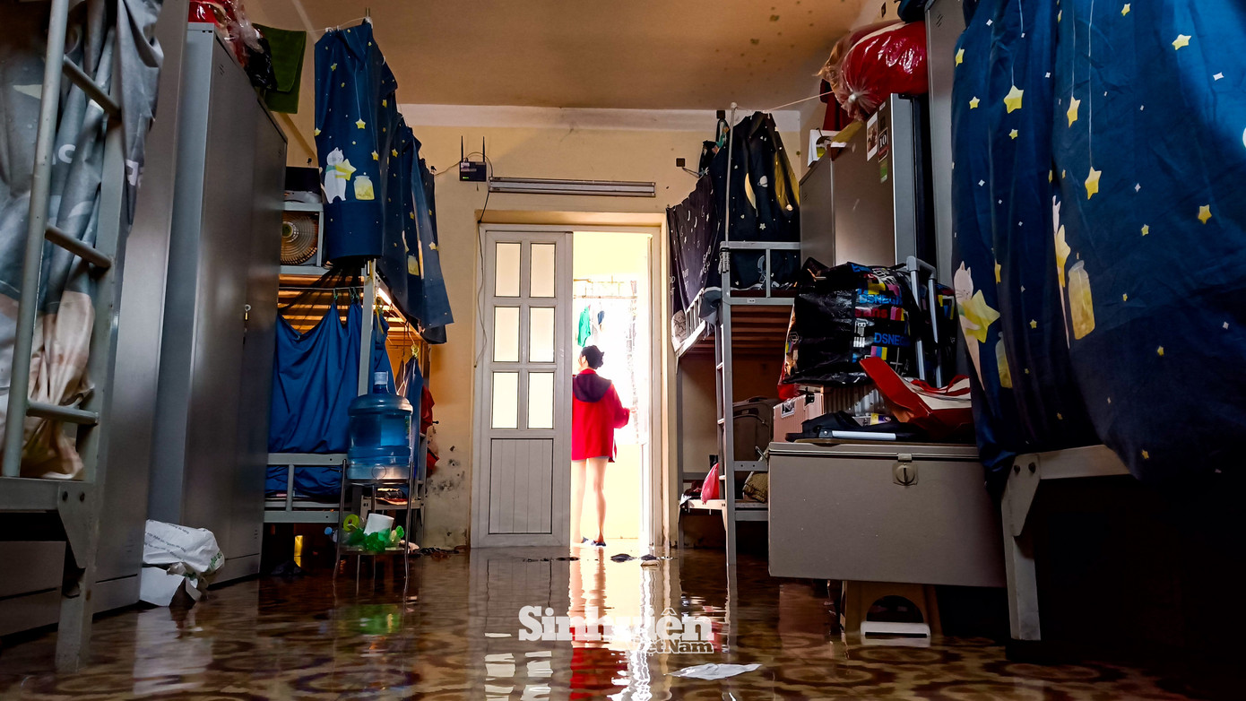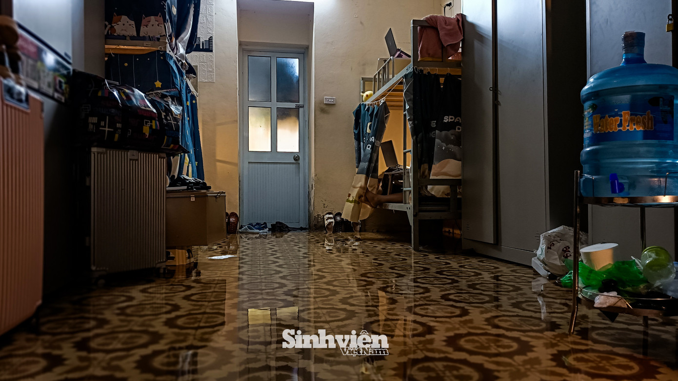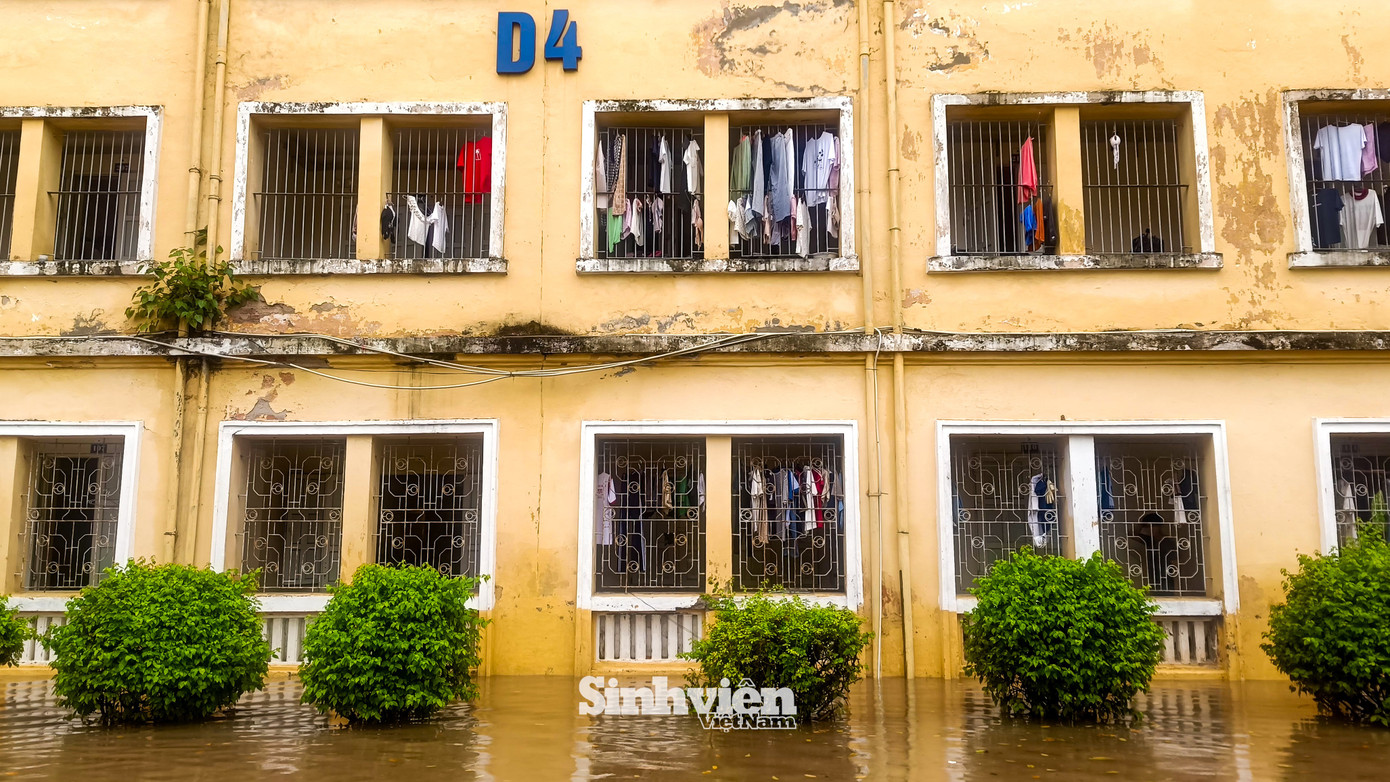 Lý Triệu Vy, sinh viên năm 2 ngành Ngôn ngữ Nga chia sẻ: "Khoảng 4h30 sáng, gió giật mạnh kèm tiếng mưa lớn đã đánh thức rất nhiều bạn trong ký túc xá. Chúng mình chỉ kịp tỉnh dậy khóa chặt cửa sổ rồi ngủ tiếp. Tuy nhiên, đến 8h30 sáng, Vy và các bạn cùng phòng bất ngờ khi thấy nước đã ngập quá mắt cá chân ngay trong phòng mình. Sách vở, giày dép và một số vật dụng dưới sàn đều đã nổi lềnh bềnh.