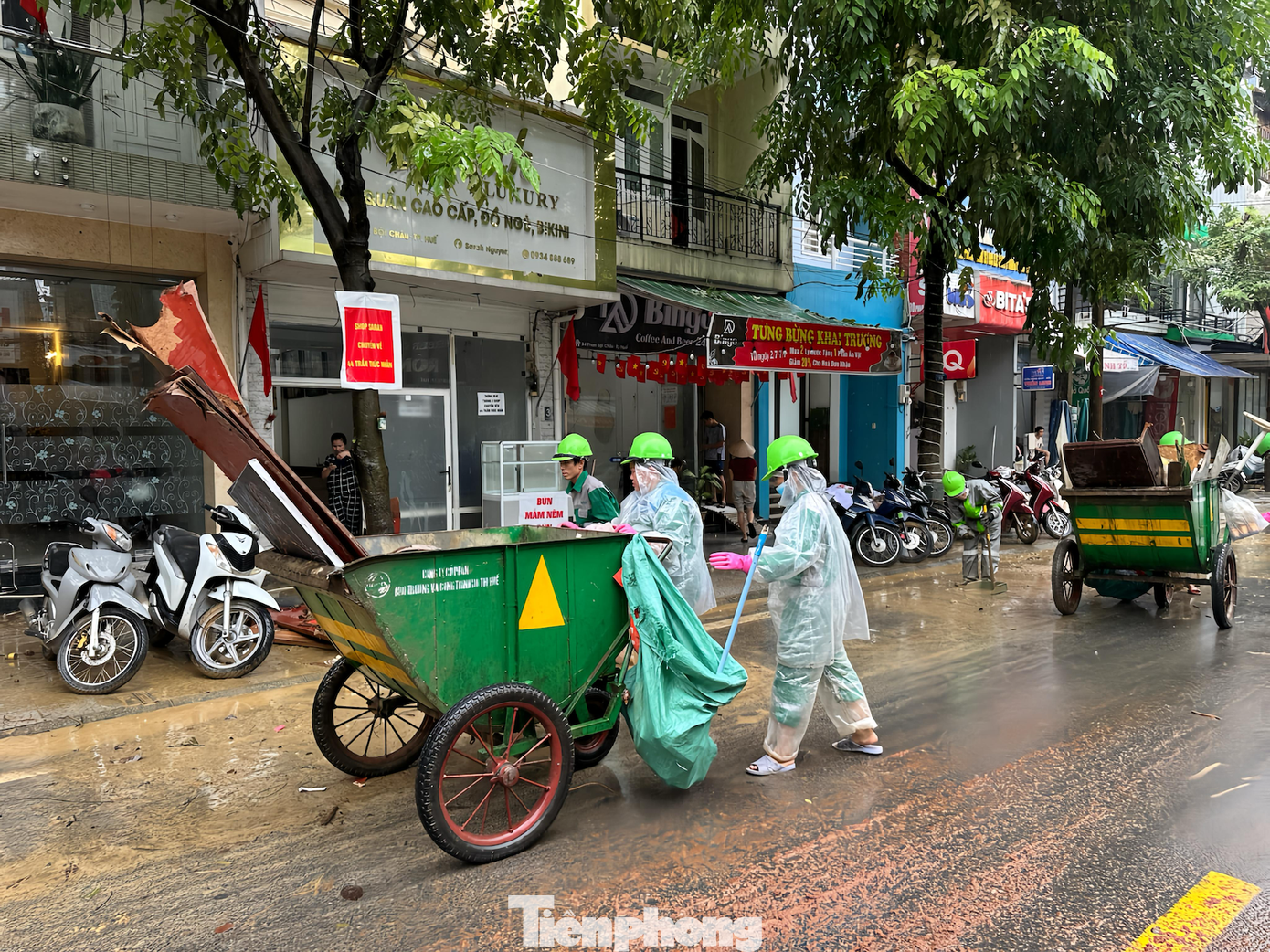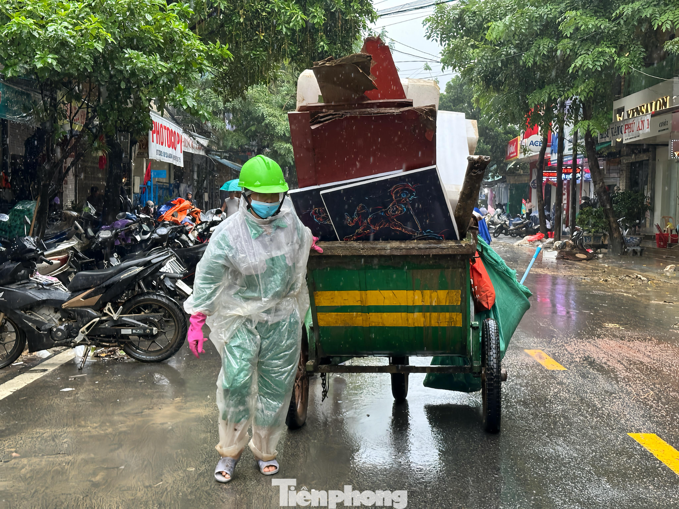 Lực lượng vệ sinh môi trường đã có mặt tại những nơi nước rút để cùng người dân dọn dẹp, đảm bảo vệ sinh khu vực.