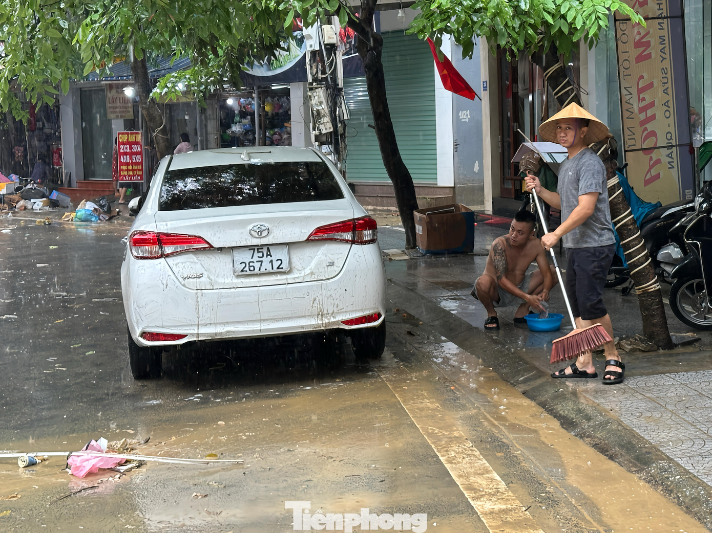 Chị Nguyễn Thị Thanh Trâm (trú phường Vĩnh Ninh, TP Huế) cho biết, đợt lũ khiến cửa hàng áo quần của chị bị ngập sâu, nhiều thiết bị và hàng hóa hư hỏng. “Nước vừa rút là tôi lập tức dọn dẹp bùn đất, lau rửa sàn và kệ. Cố gắng khắc phục được chừng nào hay chừng đó, chứ để lâu thì hư hết”, chị Trâm chia sẻ.