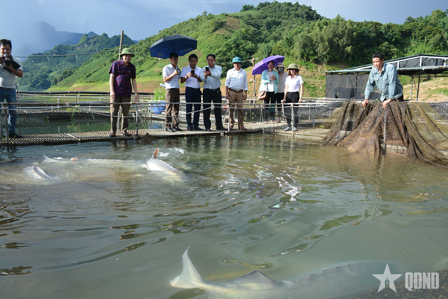 Nuôi cá tầm tại lòng hồ thủy điện Sơn La.