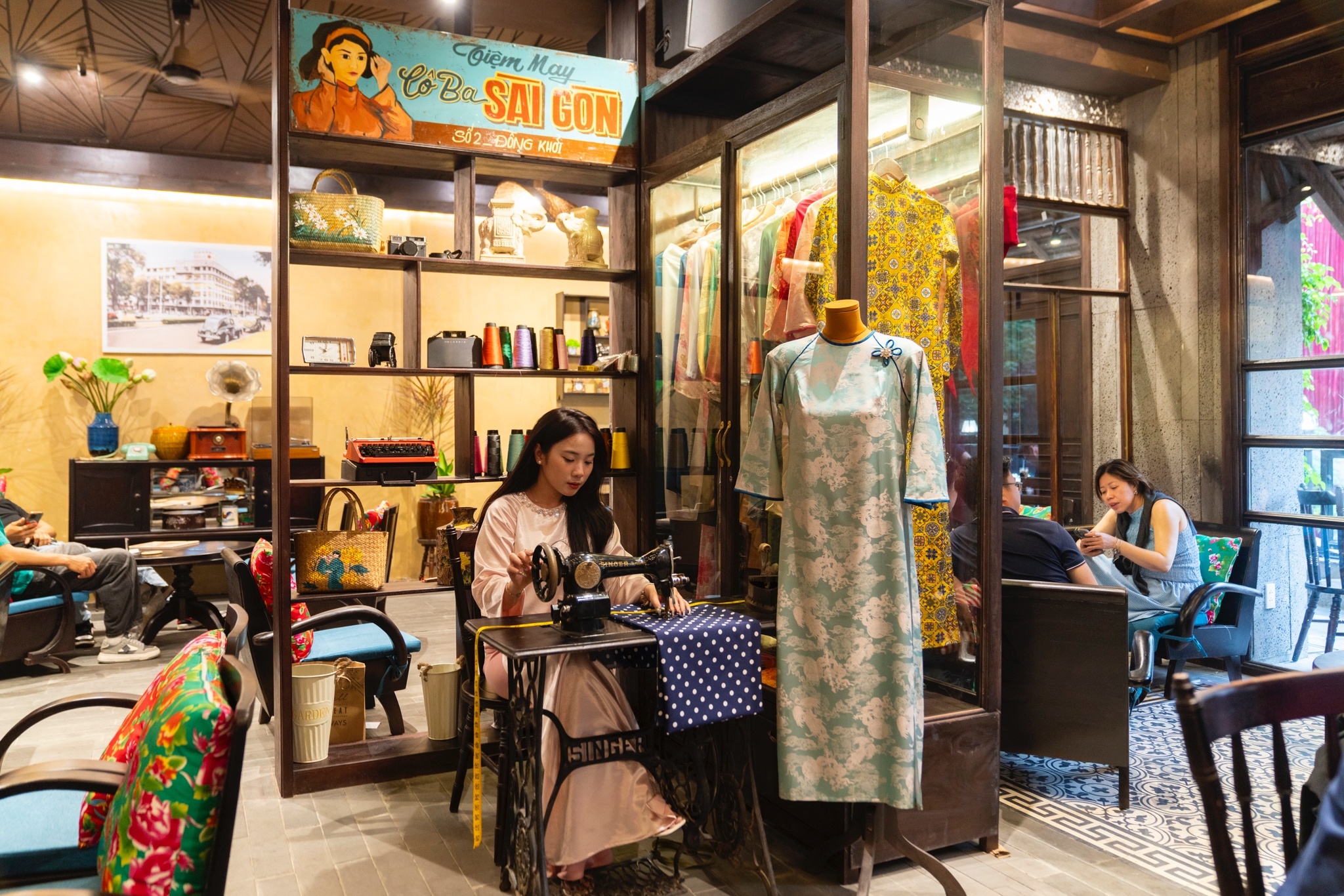 Tọa lạc trong khu phố "vàng" sầm uất của phường Sài Gòn, ngay góc ngã tư Đồng Khởi - Ngô Đức Kế, quán cà phê Cô Ba nằm ở tầng 1 tòa nhà số 2 Đồng Khởi gây ấn tượng với không gian đậm chất Sài Gòn xưa. Quán từng có thời gian đóng cửa gần 2 năm, vừa quay trở lại hoạt động từ đầu tháng 11, nhanh chóng đón lượng khách ổn định nhờ nhu cầu chụp ảnh áo dài, chụp hình Tết tăng cao vào dịp cuối năm.