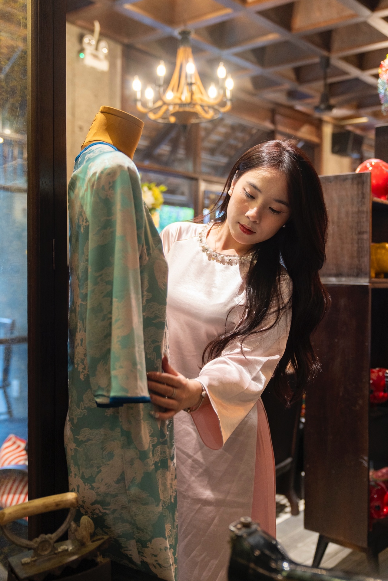 Biết đến quán qua TikTok, Ngọc Hân (phường Tân Phú) cùng bốn người bạn chuẩn bị hoa sen, thuê áo dài rồi tìm đến chụp ảnh Tết. Năm nào Hân cũng dành thời gian ghi lại bộ ảnh áo dài để lưu giữ và đăng vào dịp đầu năm. "Tôi ấn tượng nhất là không gian và thái độ phục vụ của nhân viên. Dù quán rất đông, các bạn vẫn niềm nở, hỗ trợ khách nhiệt tình", Hân chia sẻ. Cô gọi trà mãng cầu giá 79.000 đồng, chấm quán 8/10 điểm và cho rằng mức giá này hợp lý so với vị trí đắt đỏ ngay trung tâm. Hân cho biết sẽ quay lại quán ngay cả khi không chụp áo dài.