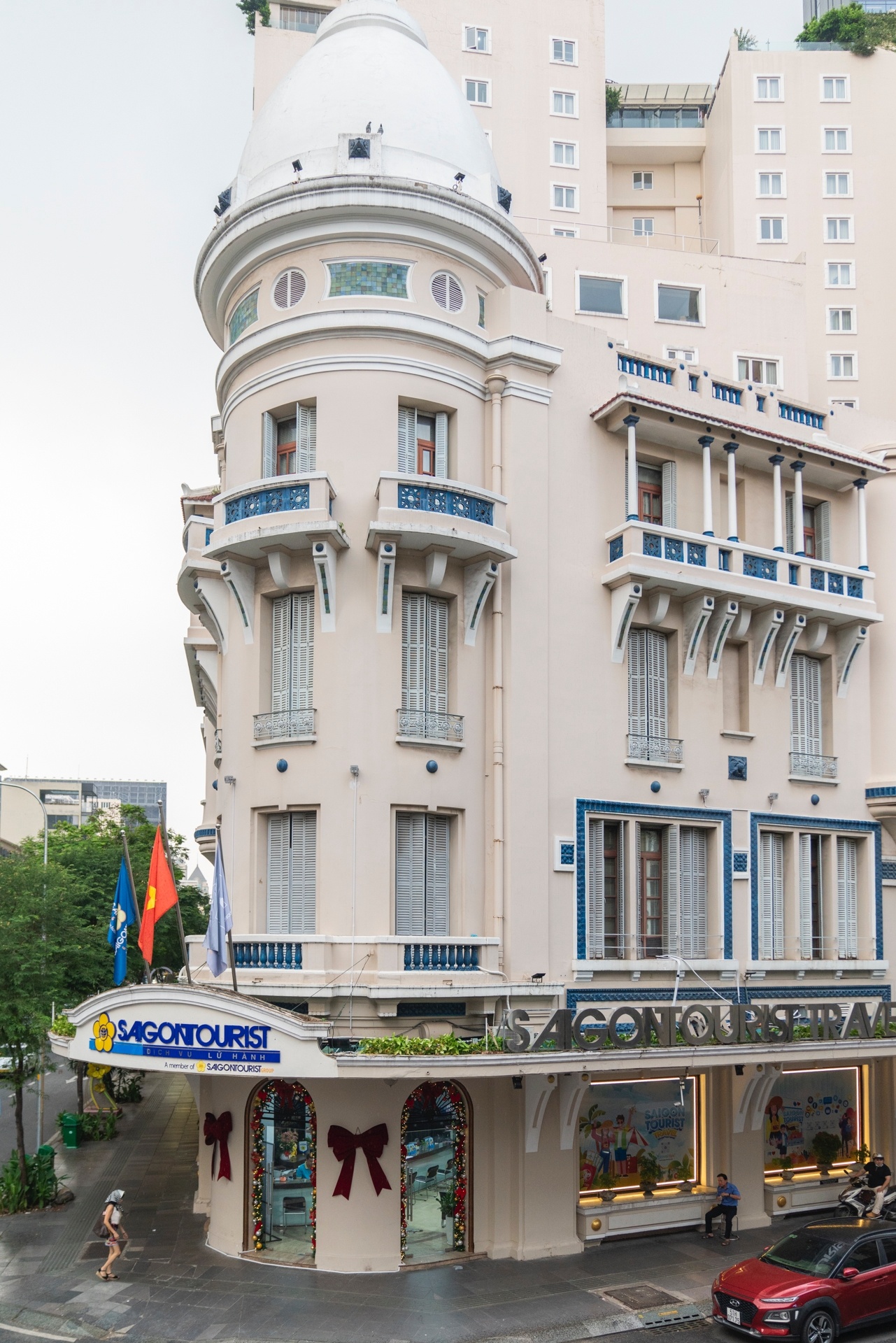 Bên cạnh đó, khách sạn Grand Sài Gòn hướng đối diện, xây dựng từ năm 1930, cũng thu hút ánh nhìn của khách. Công trình mang phong cách kiến trúc Pháp cổ - tân cổ điển, nổi bật với mặt tiền đối xứng đặc trưng. Trải qua nhiều lần trùng tu, khách sạn vẫn giữ được tinh thần kiến trúc nguyên bản, như một mảnh ghép lịch sử hiện diện giữa khu trung tâm sôi động bậc nhất TP.HCM.