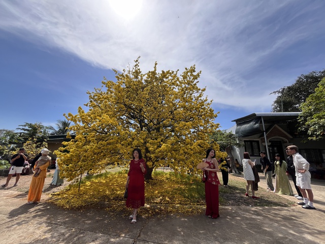 Mỗi dịp Tết đến xuân về, rất đông du khách tìm về gia đình bà Nguyễn Thị Vui ở xã Tân Phú, tỉnh Đồng Nai để tận mắt chiêm ngưỡng cây mai hơn 70 năm tuổi