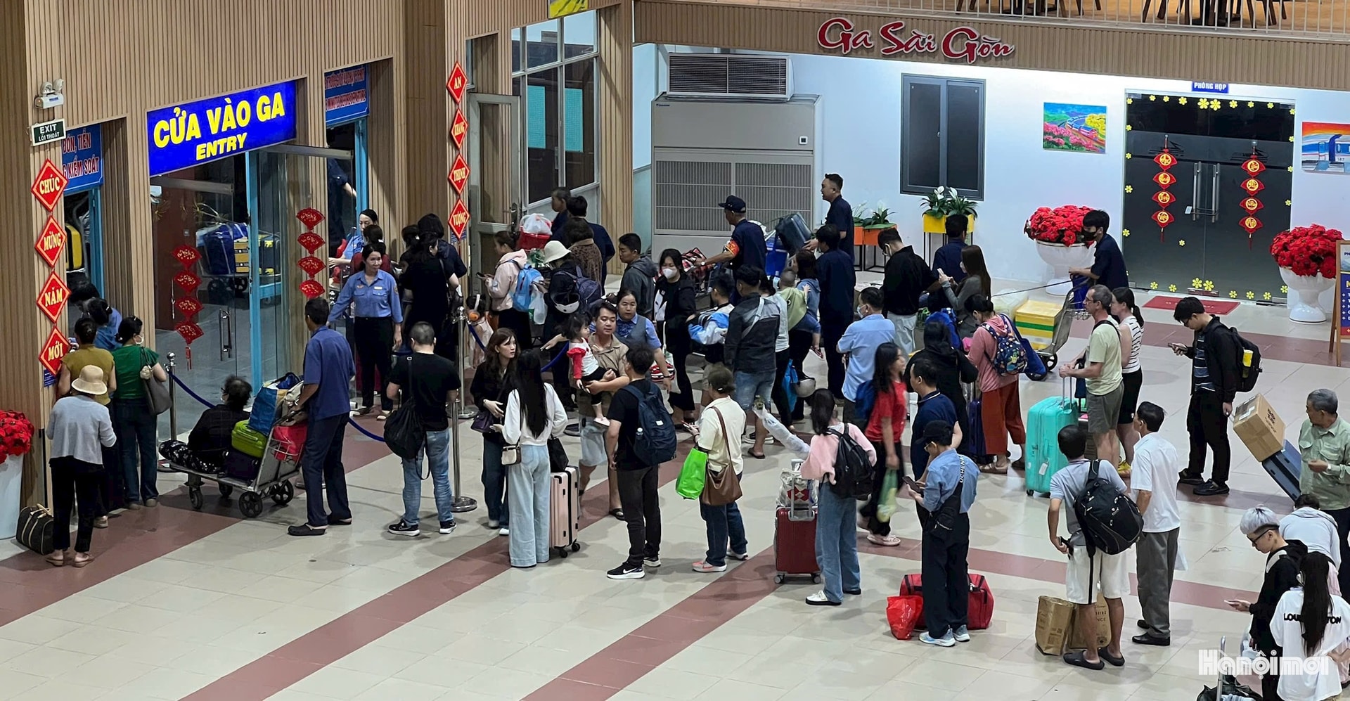 Còn tại ga Sài Gòn (phường Nhiêu Lộc), từ ngày 20 tháng Chạp trở đi, trong lẫn ngoài nhà ga luôn đông nghẹt hành khách tập trung xếp hàng dài để lên tàu về quê đón Tết.