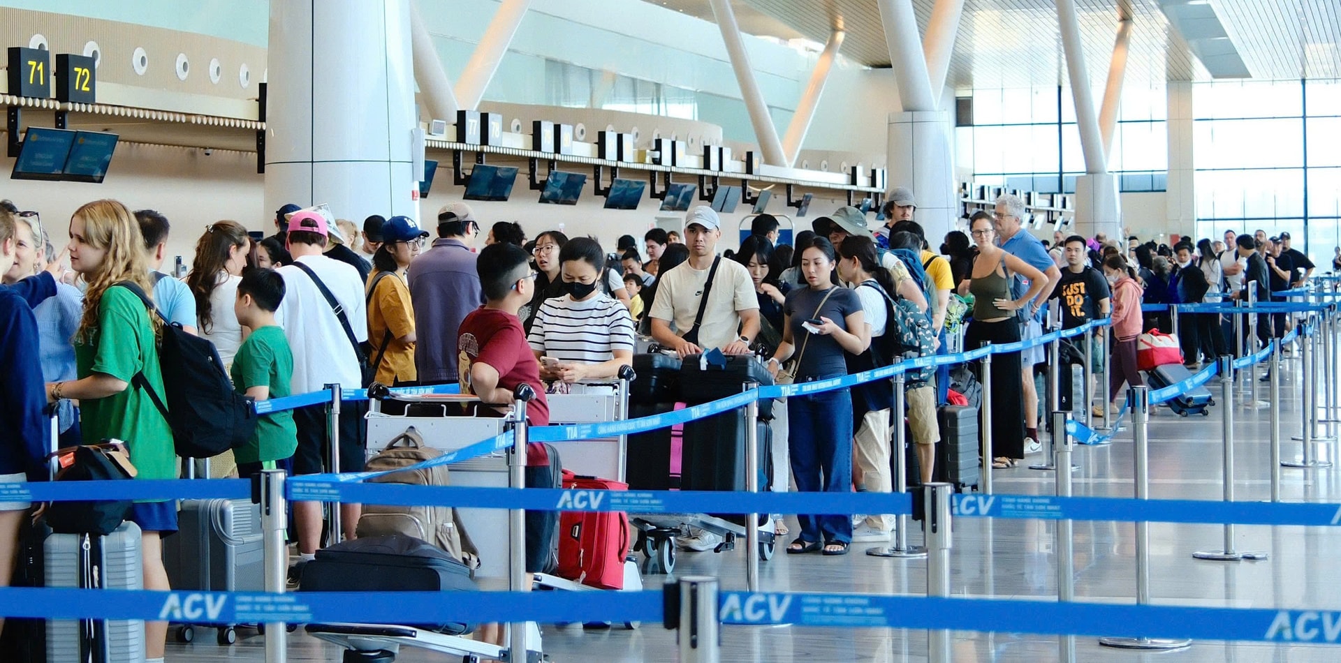 Tương tự, tại sân bay quốc tế Tân Sơn Nhất, bên trong các sảnh chờ rất đông người dân lỉnh kỉnh đồ đạc, quà cáp xếp hàng dài chờ đến lượt làm thủ tục.