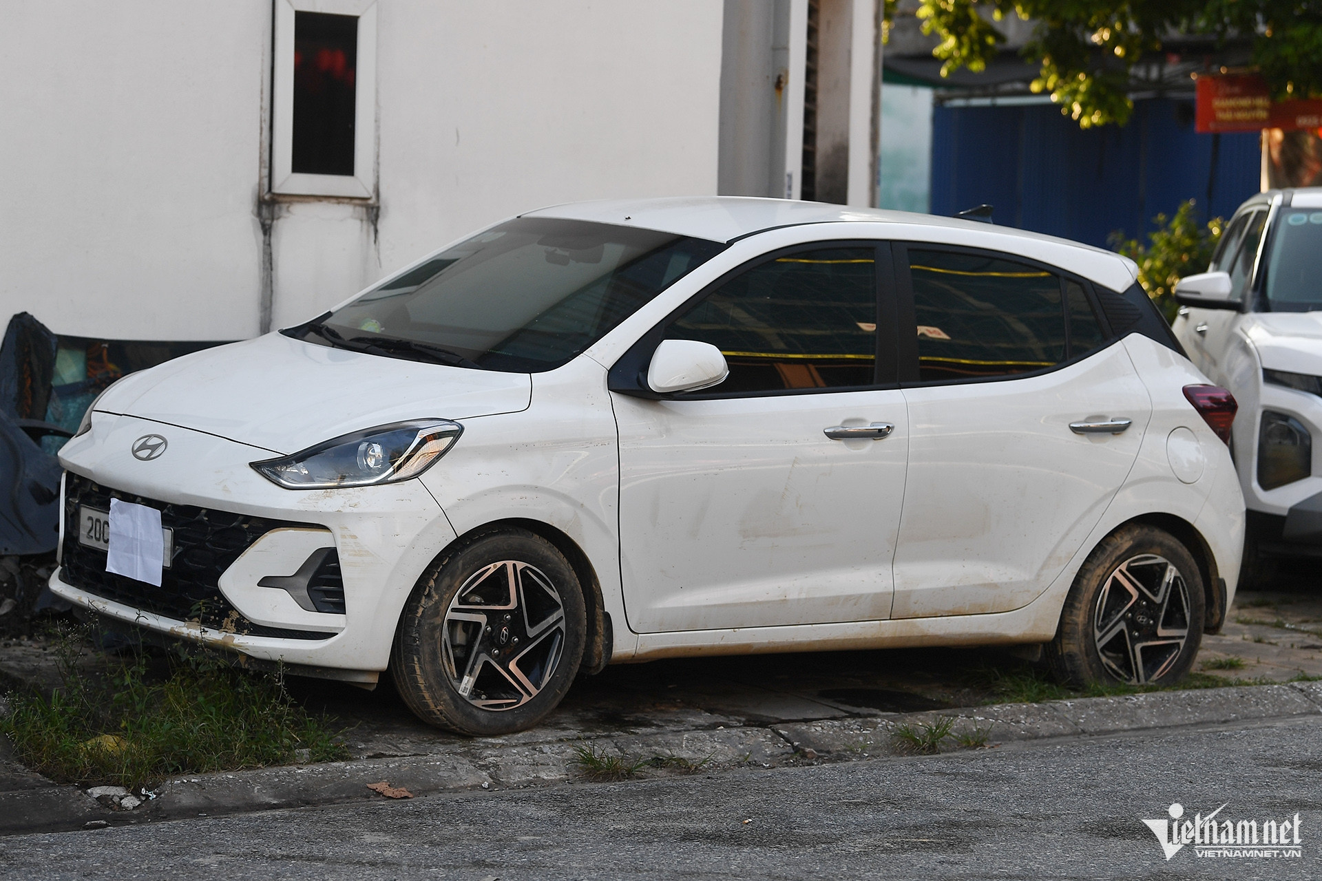Một chiếc Hyundai i10 được bọc nilon biển kiểm soát nhưng vẫn lộ rõ số.