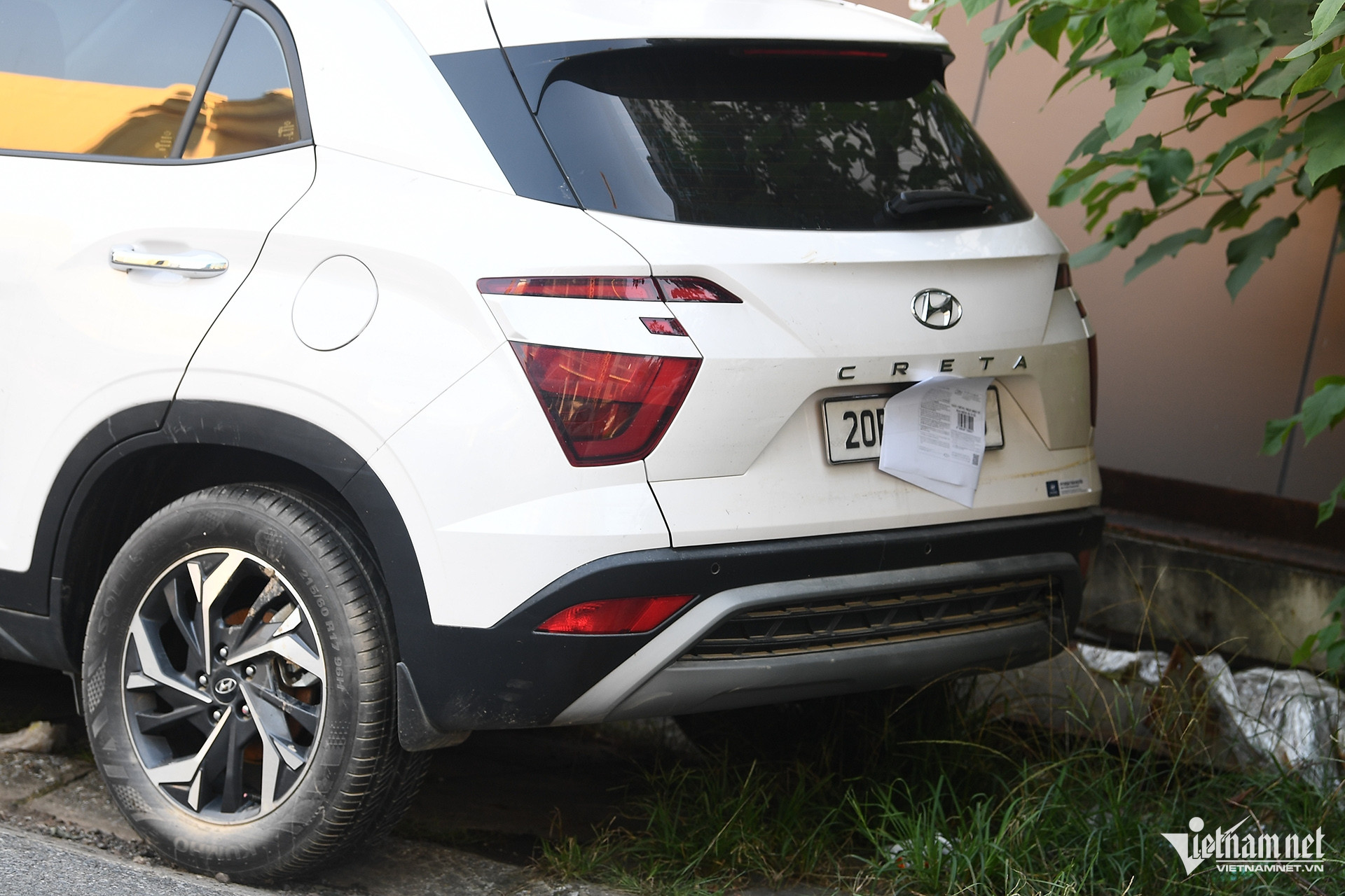 Những chiếc xe chưa thể đưa đến cơ sở sửa chữa, để ở khu dân cư, được chủ dán giấy che biển kiểm soát.