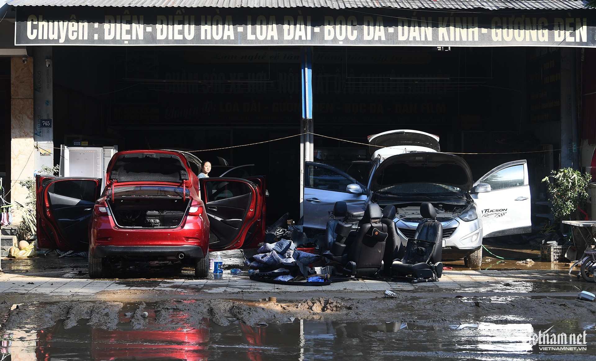 Các gara sửa chữa xe hơi ở nhiều phường thuộc tỉnh Thái Nguyên bắt đầu trong tình trạng quá tải, khi nhiều xe bị ngâm nước lũ hơn 3 ngày được đưa đến phục hồi.