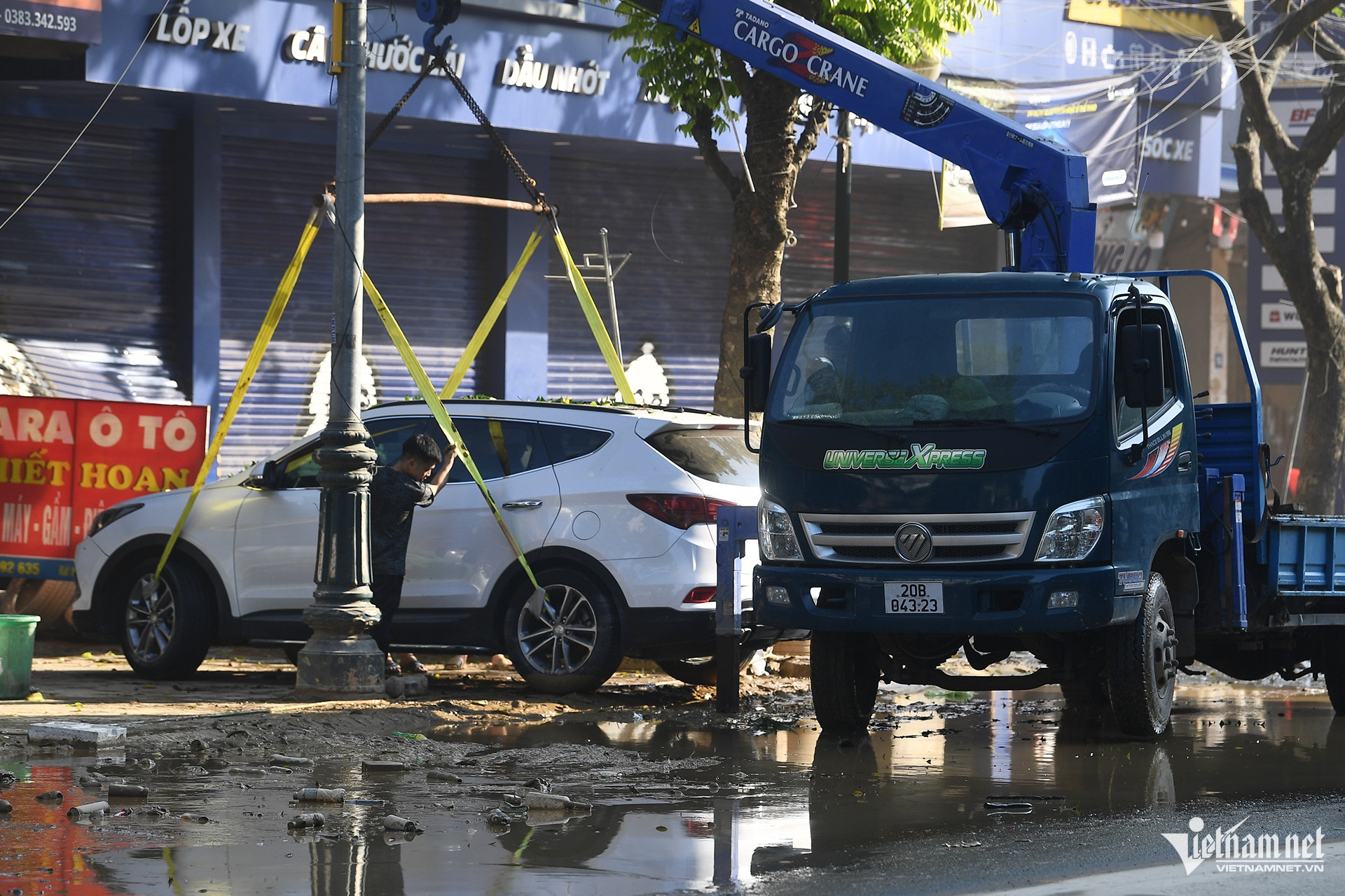Tại phường Phan Đình Phùng, một chiếc Hyundai được chủ thuê xe cẩu đến chở đi nhưng trọng tải của chiếc cẩu này không đủ. Sau đó, chiếc cẩu đã rời đi nơi khác.