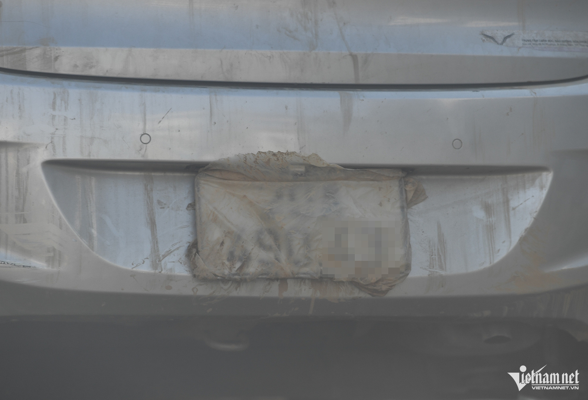 Cũng có những xe bùn đất đã phủ kín biển số.