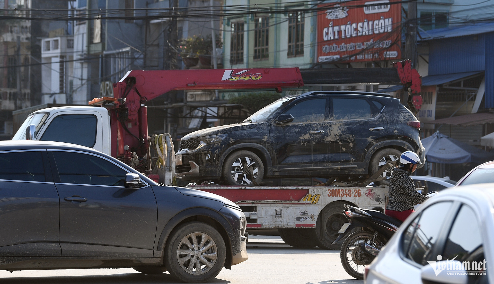 Nhiều xe được cứu hộ chở về Hà Nội, nhưng cũng có xe được đưa đến gara ngay tại trung tâm tỉnh Thái Nguyên.