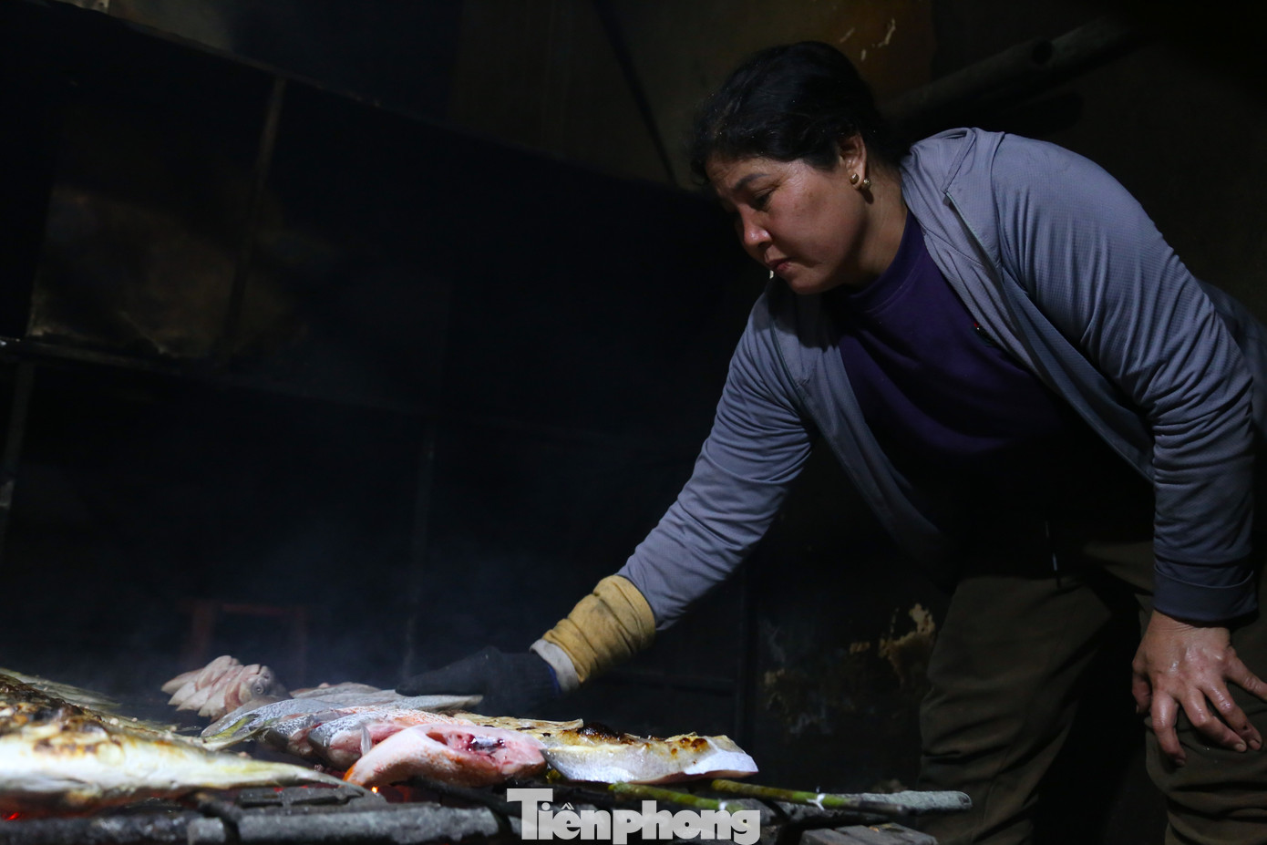 Tại cơ sở nướng cá của gia đình ông Hoàng Đức Hòa (60 tuổi, khối Thành Công, phường Cửa Lò), bếp than đỏ lửa gần như suốt ngày đêm. Ông Hòa cho biết, trung bình mỗi ngày gia đình nướng khoảng 1 tạ cá. Tuy nhiên dịp giáp Tết, sản lượng tăng gấp 2-3 lần. Công việc bắt đầu từ 2 - 3 giờ sáng đến khi hết mẻ cá cuối cùng để kịp giao thương lái. Các loại cá nướng đa dạng như cá thu, bạc má, cá mu, cá trích, cá cơm....