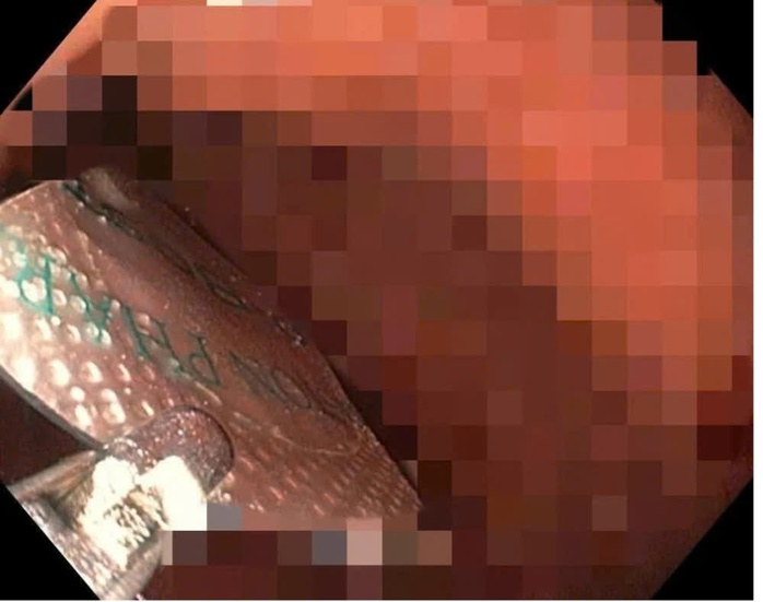 Bệnh nhân 52 tuổi, ngụ tại Lâm Đồng, nhập viện trong tình trạng đau bụng dữ dội. Qua thăm khám và nội soi, bác sĩ phát hiện dị vật là một viên thuốc còn nguyên vỏ mắc ở vùng môn vị, khiến niêm mạc dạ dày bị trầy xước. Ê-kíp y bác sĩ đã nhanh chóng nội soi, gắp bỏ viên thuốc ra ngoài an toàn.