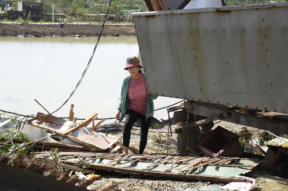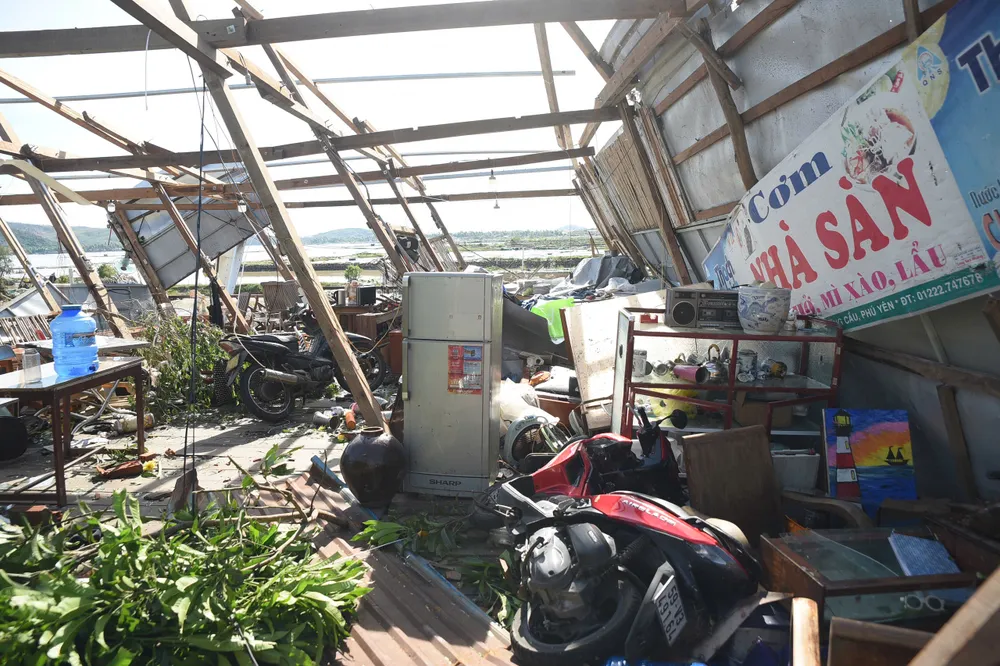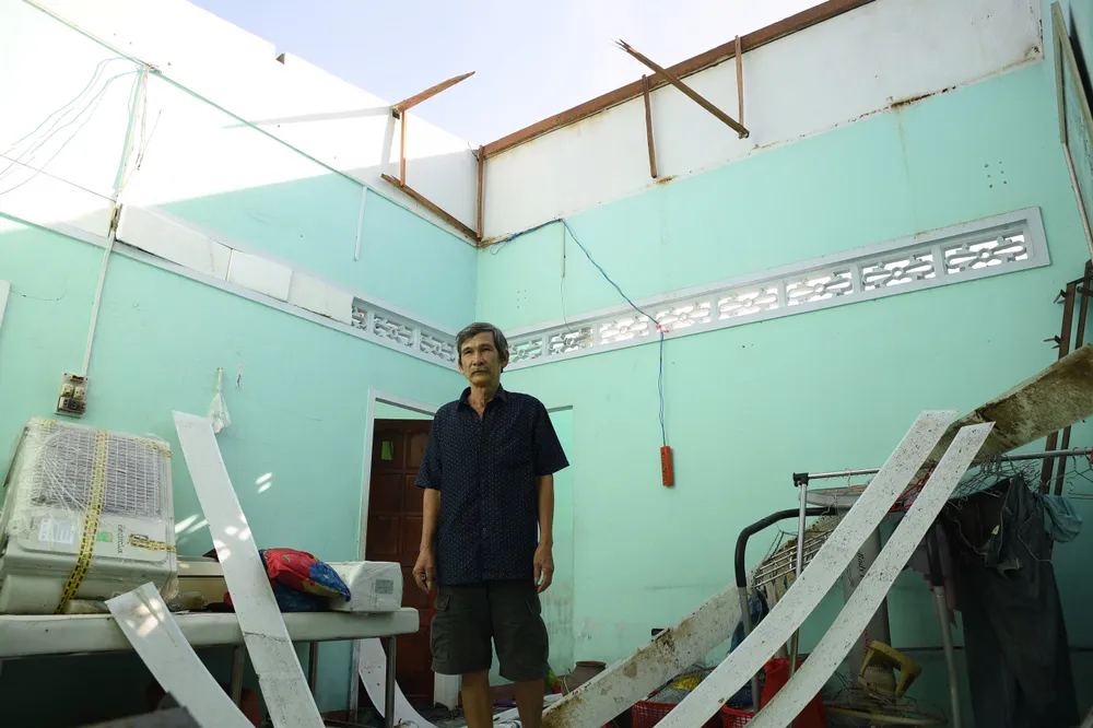 Cùng cảnh ngộ với ông Kỳ là gia đình ông Ngô Minh Hùng, 60 tuổi ngụ cùng thôn Hòa Mỹ. Căn nhà của vợ chồng ông trong chốc lát đã bị cơn bão tốc mái, cuốn bay. Hai vợ chồng ông chỉ kịp chạy vào nhà vệ sinh trốn bão.
