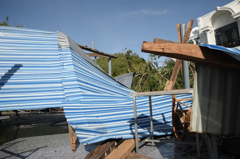 17 giờ 20 phút ngày 6-11, toàn bộ mái tôn, ngói cùng kèo, cột của căn nhà của vợ chồng ông Đỗ Hữu Kỳ, 68 tuổi, ngụ thôn Hòa Mỹ, xã Xuân Cảnh, tỉnh Đắk Lắk, bị cơn lốc mạnh hất tung và cuốn bay.