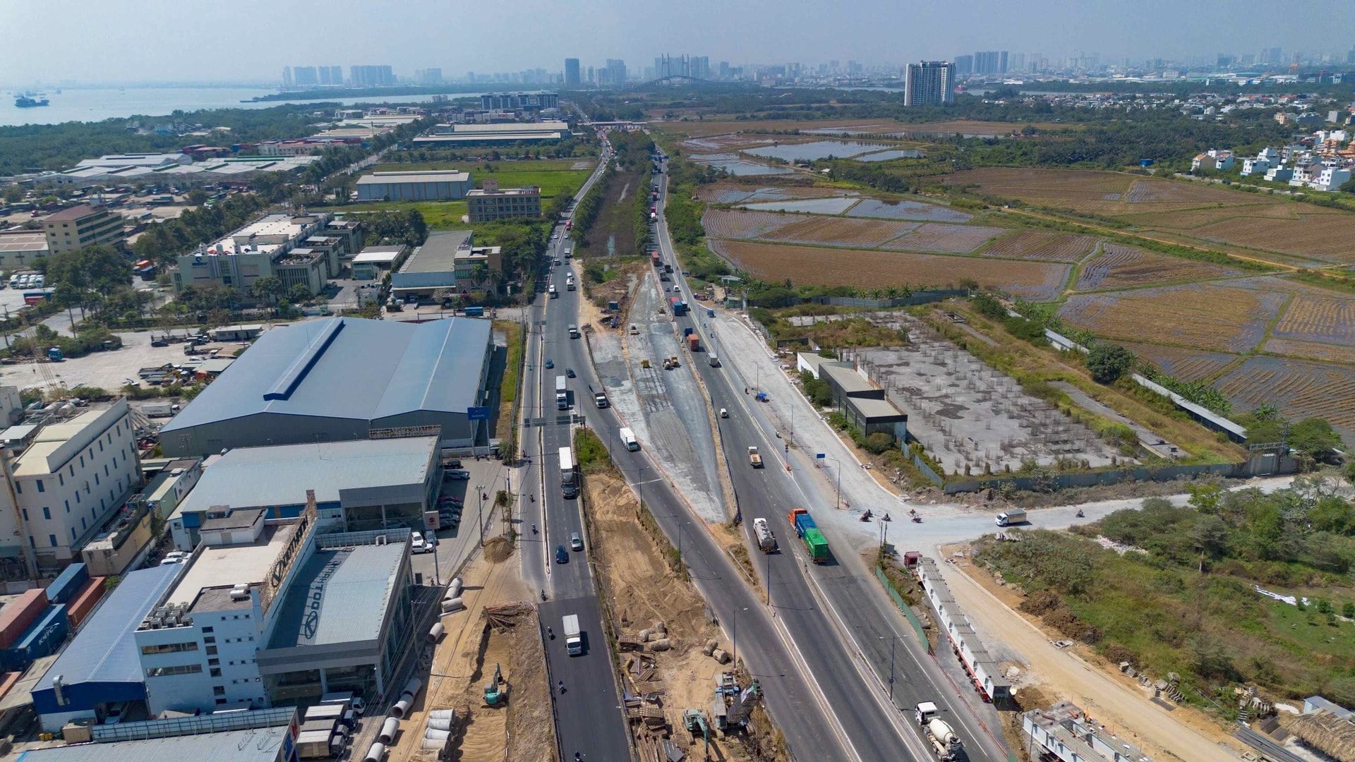 Nút giao Mỹ Thủy là công trình hạ tầng trọng điểm tại khu đông TP HCM, đóng vai trò tách dòng xe container vào cảng Cát Lái với giao thông đô thị.
