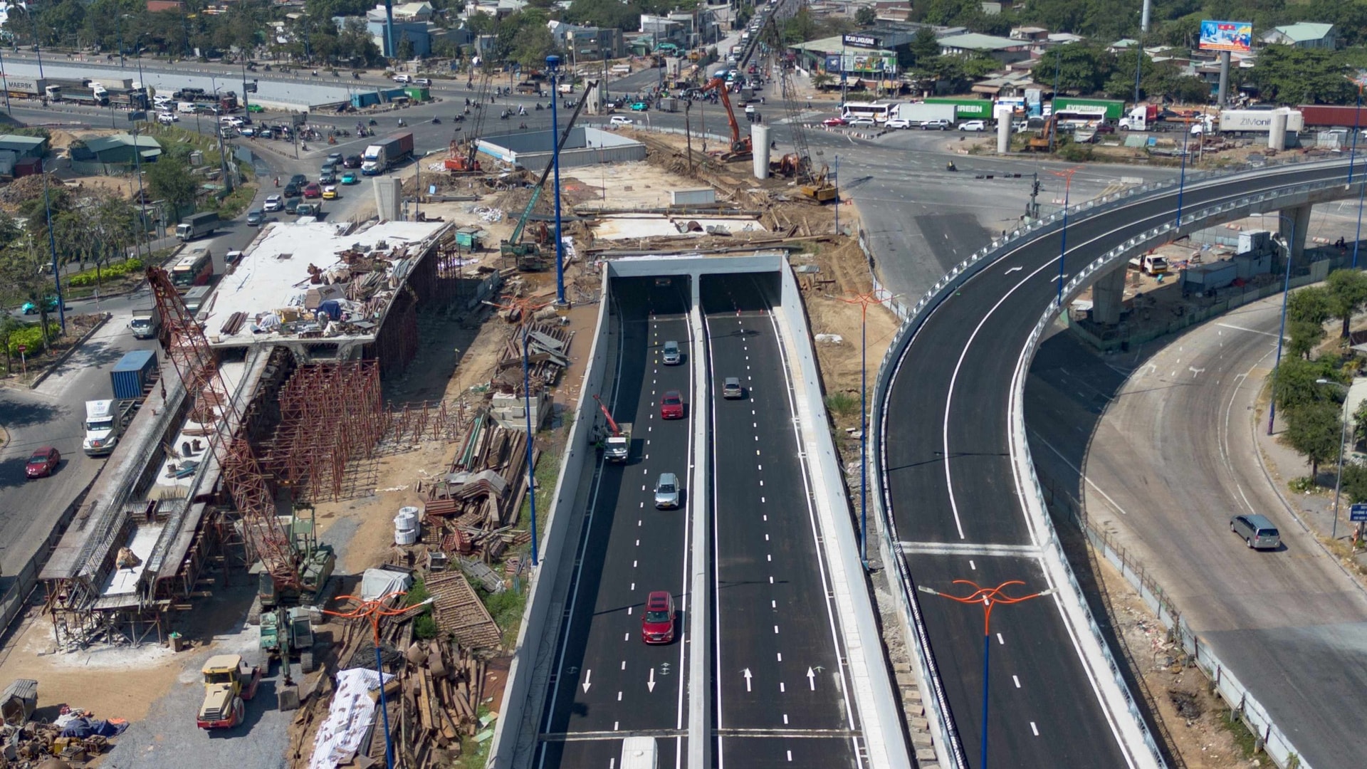 Dù hai hầm chui chính đã thông xe, dự án nút giao An Phú vẫn còn một số hạng mục cầu vượt đang trong giai đoạn nước rút. Cụ thể: