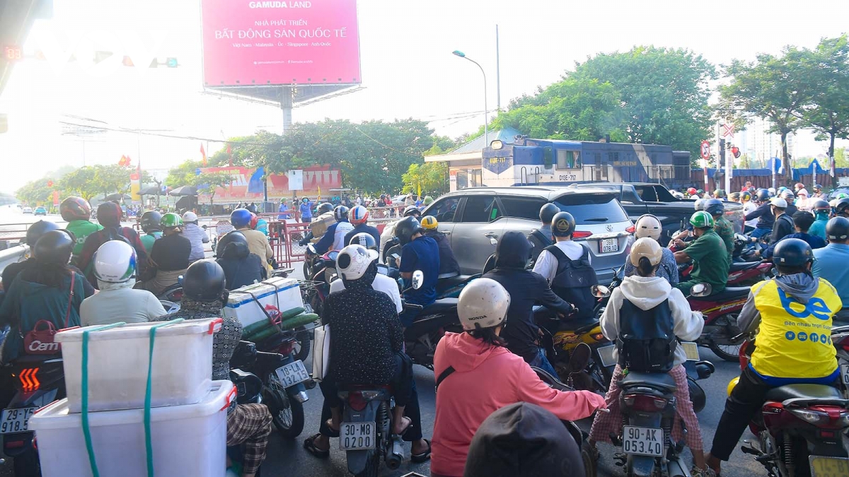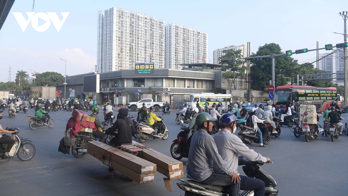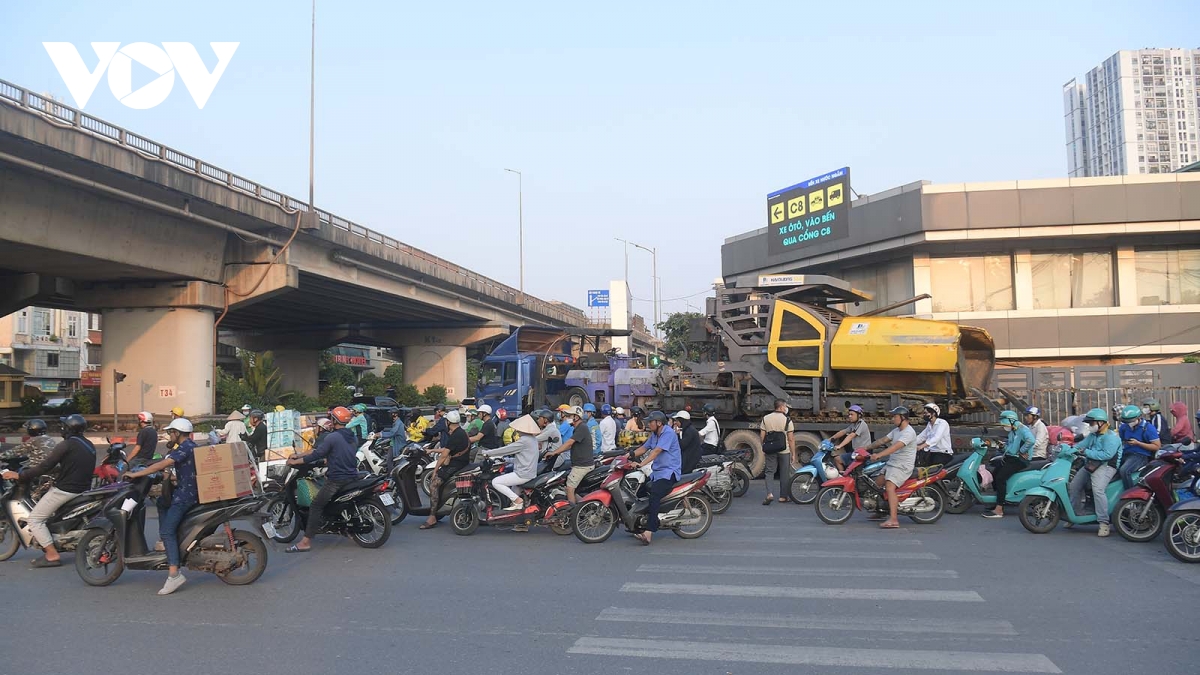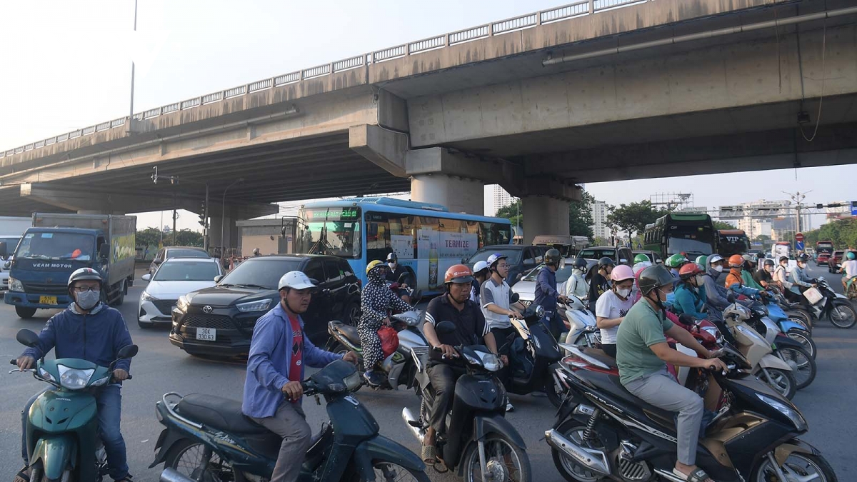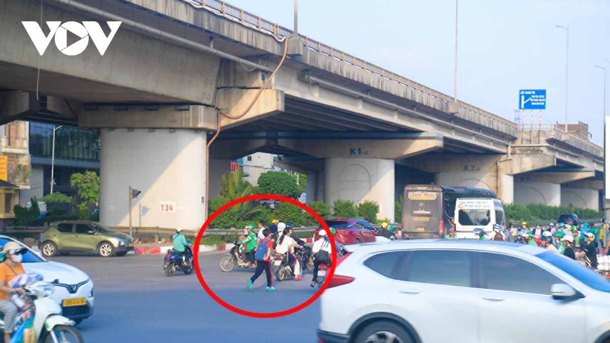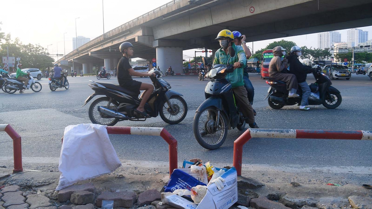 Mặc dù cấm người và phương tiện di chuyển thẳng từ đường Hoàng Liệt (vành đai 3) qua nút giao sang đường Đỗ Mười nhưng nhiều học sinh vẫn đi xe đạp, xe máy điện,...