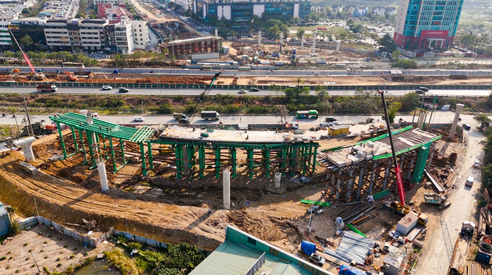 Về phần cầu, nhà thầu đã hoàn thành 59% cọc khoan nhồi đường kính D1000 và hơn 35% cọc D1500. Các cấu phần như bệ mố trụ và thân trụ cầu lần lượt đạt 37,5% và 35% khối lượng. Đáng chú ý, hai nhịp cầu thuộc nhánh 4 đã hoàn thiện, trong khi các nhánh 1, 2 và 3 đang được bồi đắp thi công liên tục.