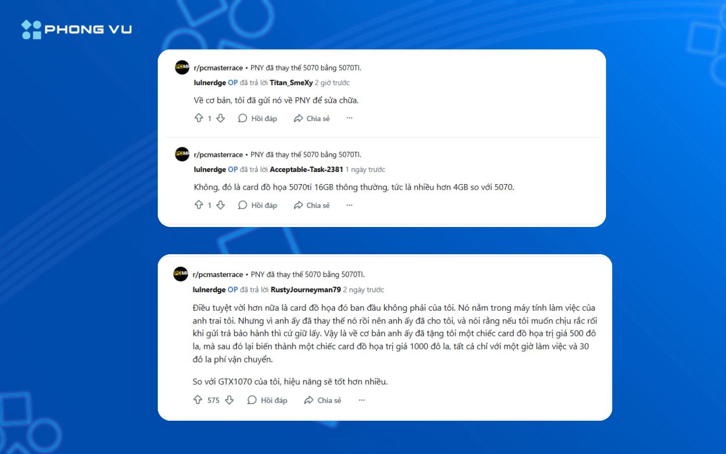 Điều nằm ngoài dự đoán là Nvidia không tiến hành sửa chữa linh kiện cũ. Thay vào đó, hãng đã gửi trả một chiếc RTX 5070 Ti hoàn toàn mới. Sự thay đổi này đã giúp giá trị của chiếc card đồ họa mà Lulnerdge sở hữu tăng vọt từ mức khoảng 500 USD lên gần 1.000 USD. Chi phí mà người dùng này phải bỏ ra chỉ bao gồm khoảng một giờ di chuyển và 30 USD phí vận chuyển.
