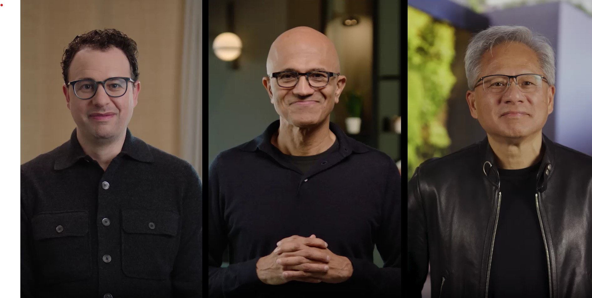 Dario Amodei (CEO Anthropic), Satya Nadella và Jensen Huang (CEO Nvidia) trong video thảo luận về quan hệ đối tác mới - Ảnh PV chụp màn hình