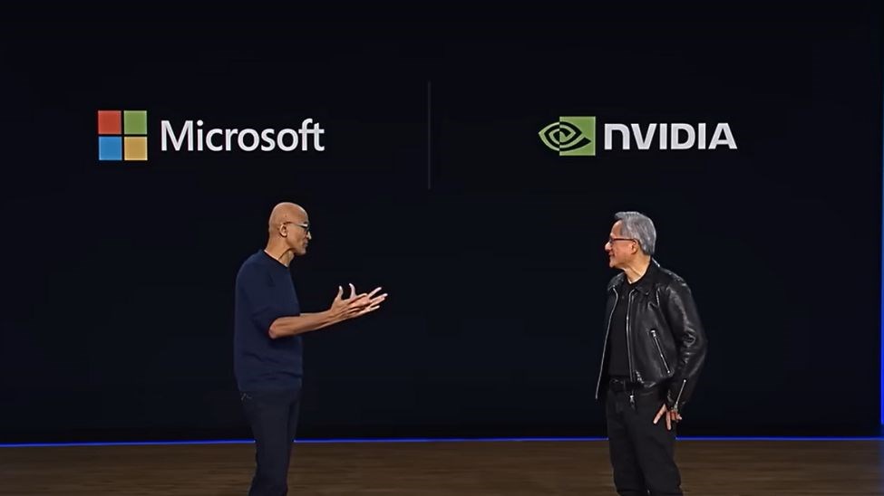 CEO Microsoft Satya Nadella (trái) và CEO Nvidia Jensen Huang (phải). Ảnh: BNEWS/TTXVN phát