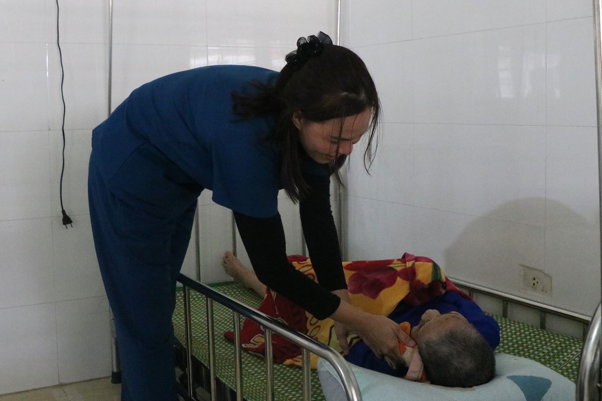 Dù không phải ca trực, nữ điều dưỡng của Làng Hòa Bình vẫn vào bệnh viện túc trực, chăm sóc đối tượng nhập viện giữa những ngày Tết