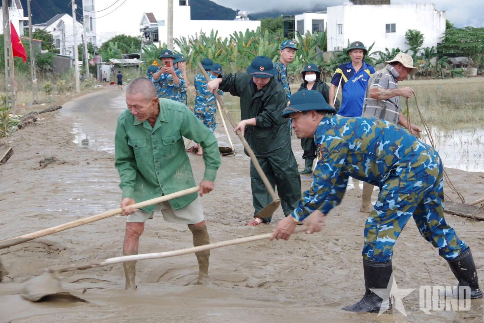 Ngay sau khi mưa lũ vừa dứt, cán bộ, chiến sĩ Trường Sĩ quan Không quân đã kịp thời có mặt tại các địa bàn bị ảnh hưởng nặng như xã Diên Khánh, Diên Thọ (tỉnh Khánh Hòa), xã Tây Khánh Vĩnh và một số khu vực của tỉnh Đắk Lắk. Tại thôn Phú Ân Nam, xã Diên Khánh, dù nước đã rút, nhưng bùn non vẫn phủ kín nhiều đoạn đường, tràn vào tận bếp của các hộ dân. Có gia đình chỉ kịp đưa người già, trẻ nhỏ lên chỗ cao, toàn bộ vật dụng sinh hoạt phó mặc cho dòng nước lũ.