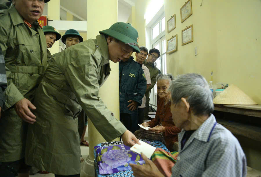 Phó Thủ tướng Chính phủ Trần Hồng Hà thăm hỏi người dân ở những nơi sơ tán chống bão số 13.