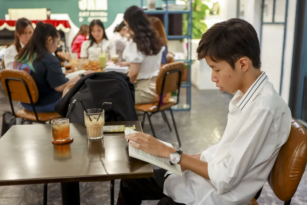 Bên trong, nhiều bạn trẻ lặng lẽ đọc sách, học bài - điều làm nên nét khác biệt của quán.
