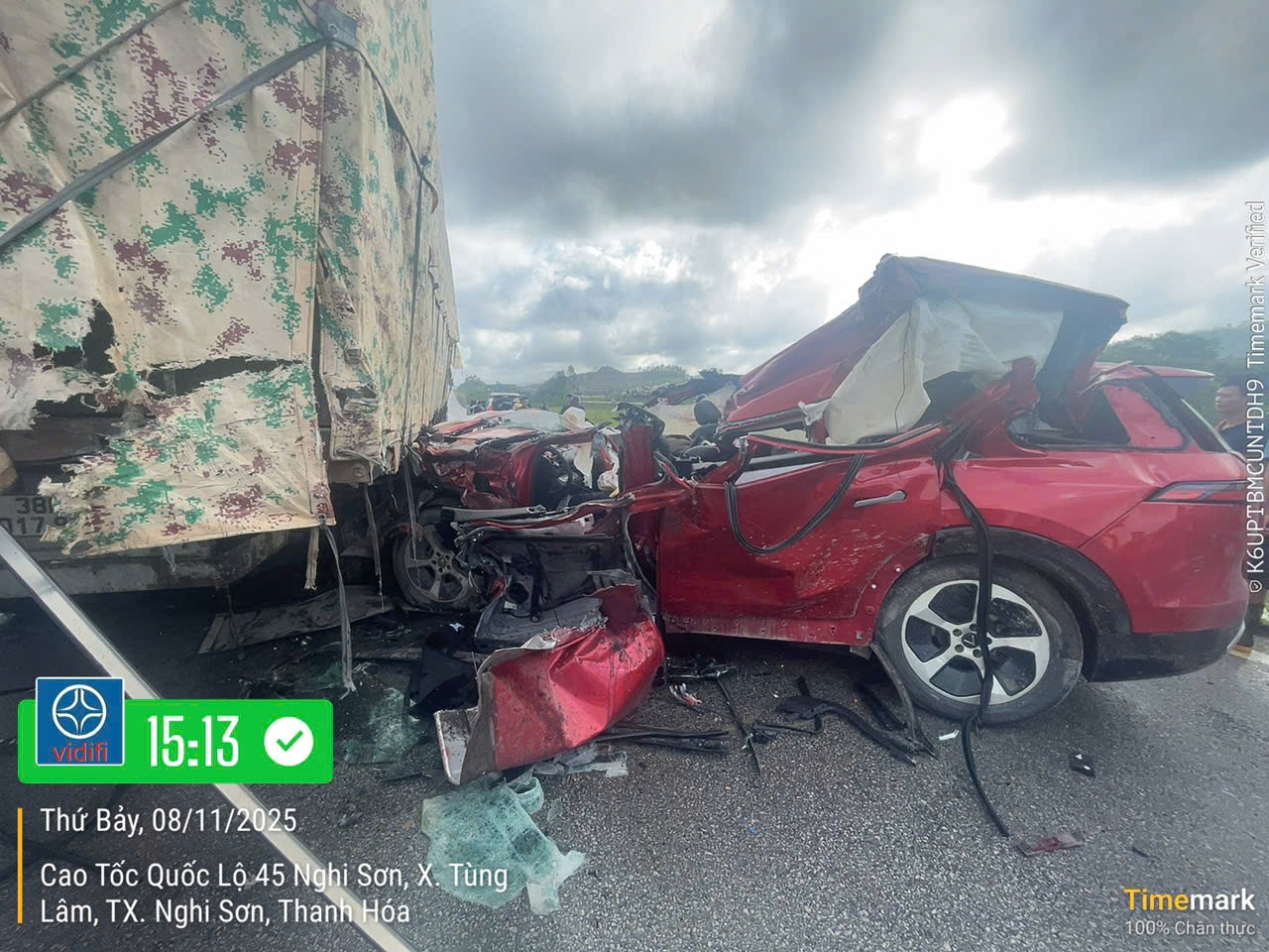 Vụ tai nạn vừa xảy ra vào lúc gần 15h chiều ngày 8/11, trên tuyến cao tốc Bắc Nam đoạn Quốc lộ 45 - Nghi Sơn (Thanh Hóa).