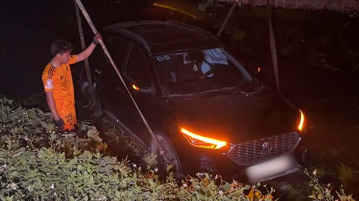 Đúng thời điểm ô tô đi qua, tàu hàng số hiệu 3606 lao tới, va chạm vào phần đuôi xe. Cú đâm khiến ô tô bị đẩy văng xuống mương nước phục vụ tưới tiêu bên cạnh đường ray.