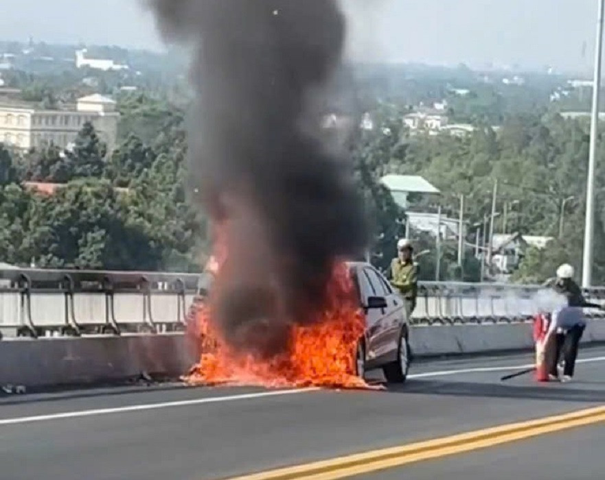 Khoảng 14h30 ngày 2/12, ô tô 5 chỗ biển kiểm soát tỉnh Đồng Tháp chạy trên quốc lộ 60 hướng từ Đồng Tháp đi Vĩnh Long. Khi đến đoạn giữa cầu Rạch Miễu (thuộc phường Thới Sơn, Đồng Tháp), tài xế phát hiện khói cuồn cuộn bốc lên trong khoang xe nên tấp xe vào lề cầu để kiểm tra.