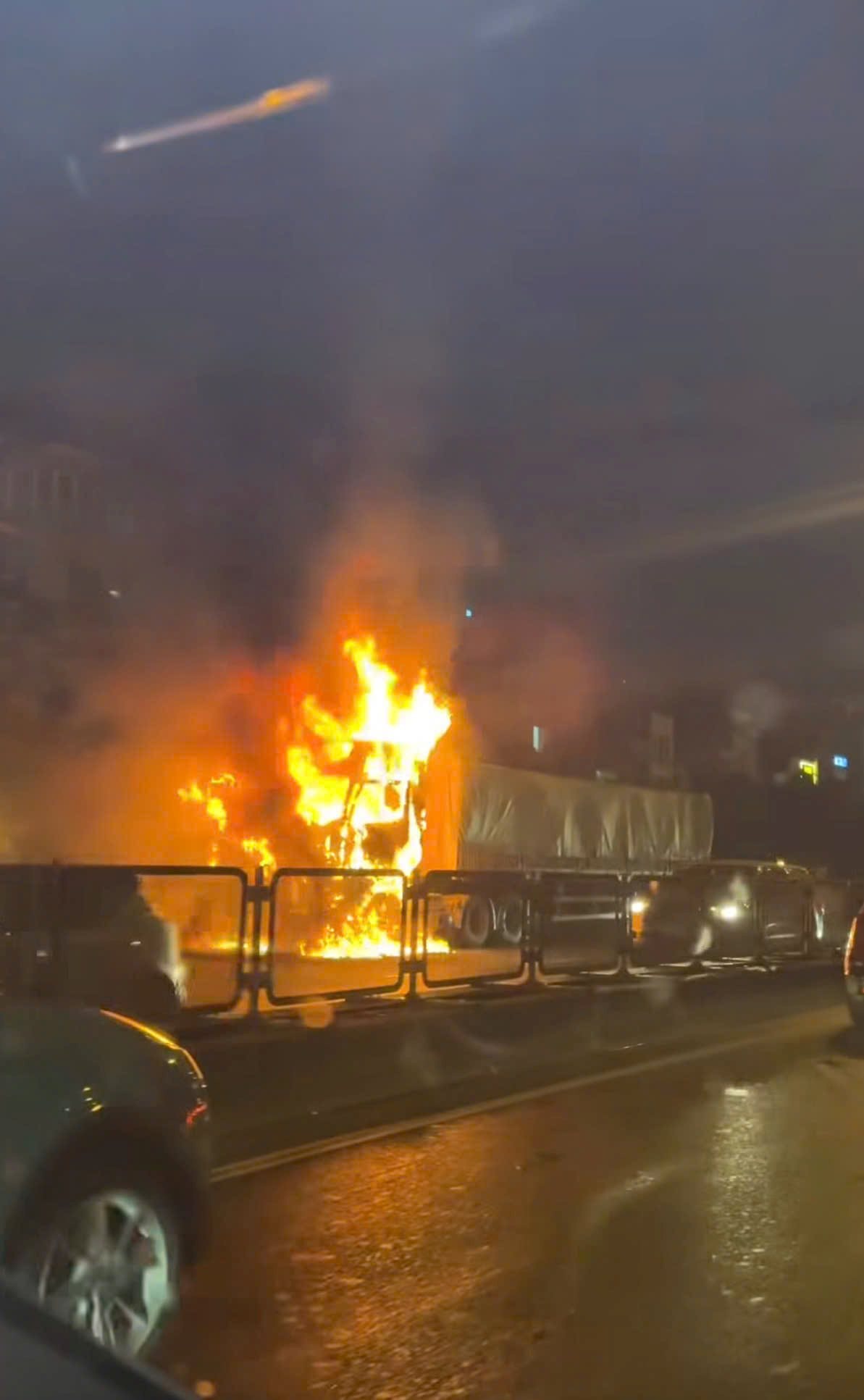 Chiếc xe tải bốc cháy ngùn ngụt