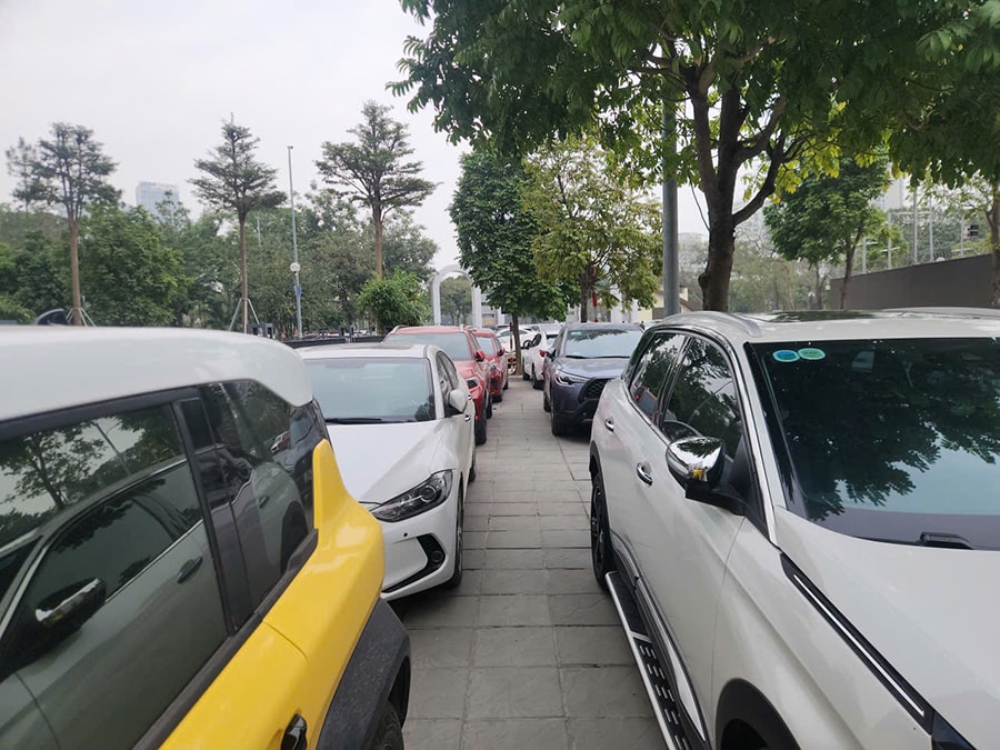 Tương tự, tại phố Phạm Văn Bạch (thuộc địa bàn hai phường Cầu Giấy và Yên Hòa), nơi tập trung nhiều chung cư, văn phòng và trường học, ô tô đỗ kín vỉa hè, tràn sát lòng đường; nhiều đoạn, vỉa hè gần như biến mất.