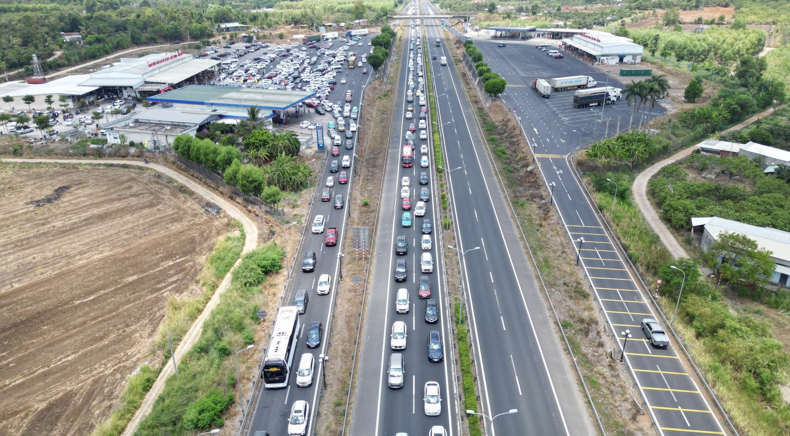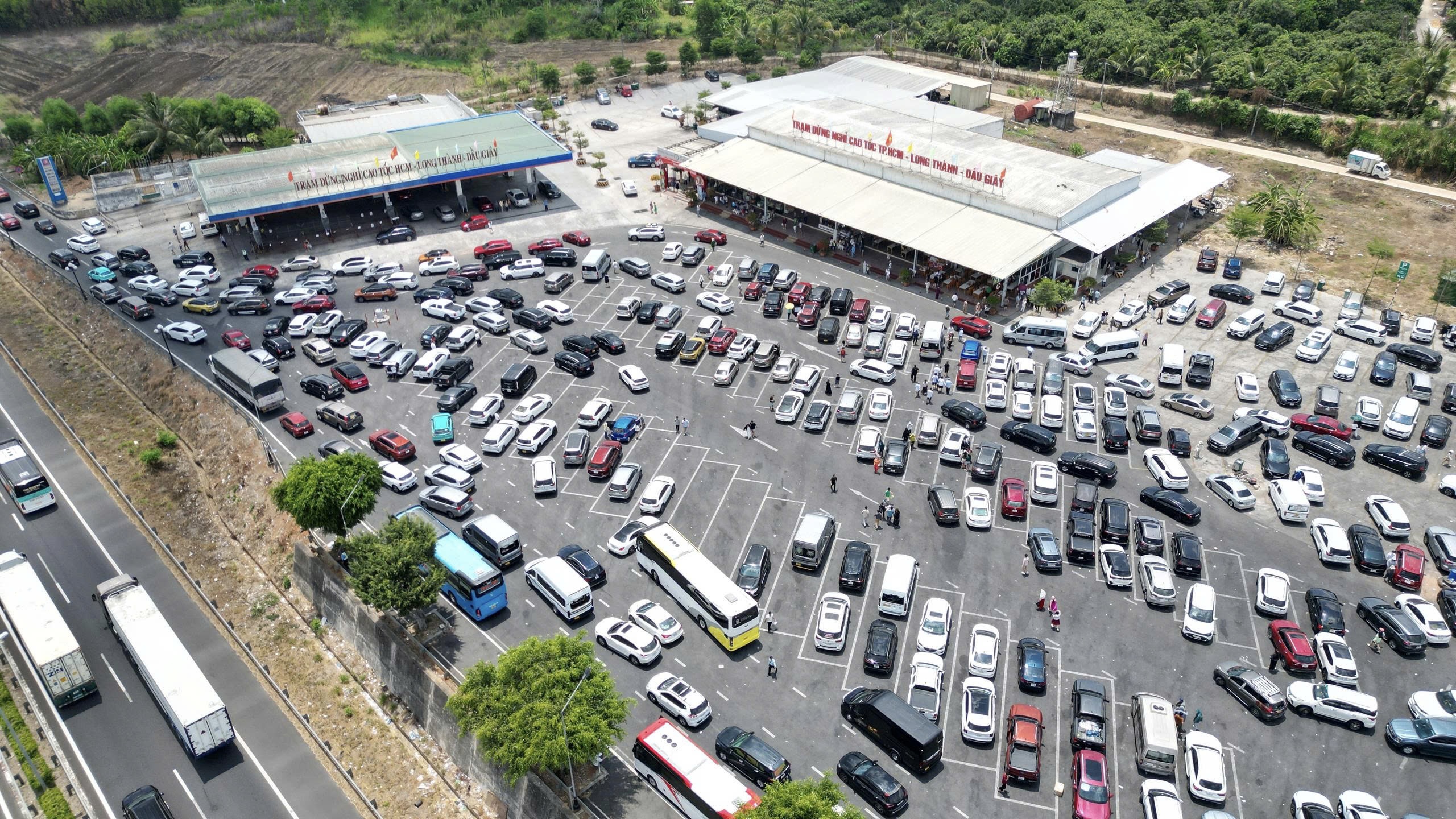 Do tình trạng ùn ứ kéo dài, nhiều người đã chọn phương án vào trạm dừng chân trên cao tốc TPHCM - Long Thành - Dầu Giây để tránh mệt mỏi. Tuy nhiên, trạm dừng nghỉ cũng rơi vào cảnh quá tải.