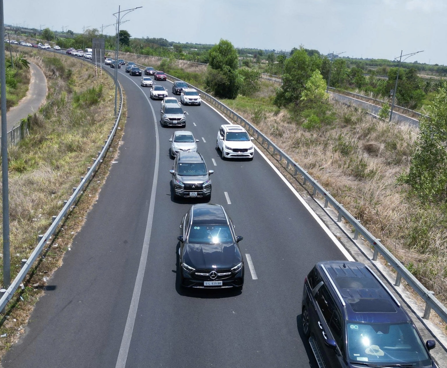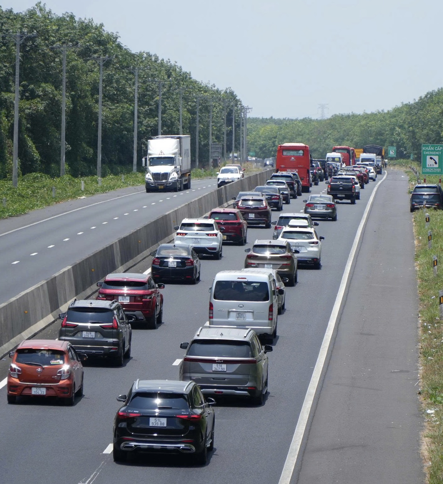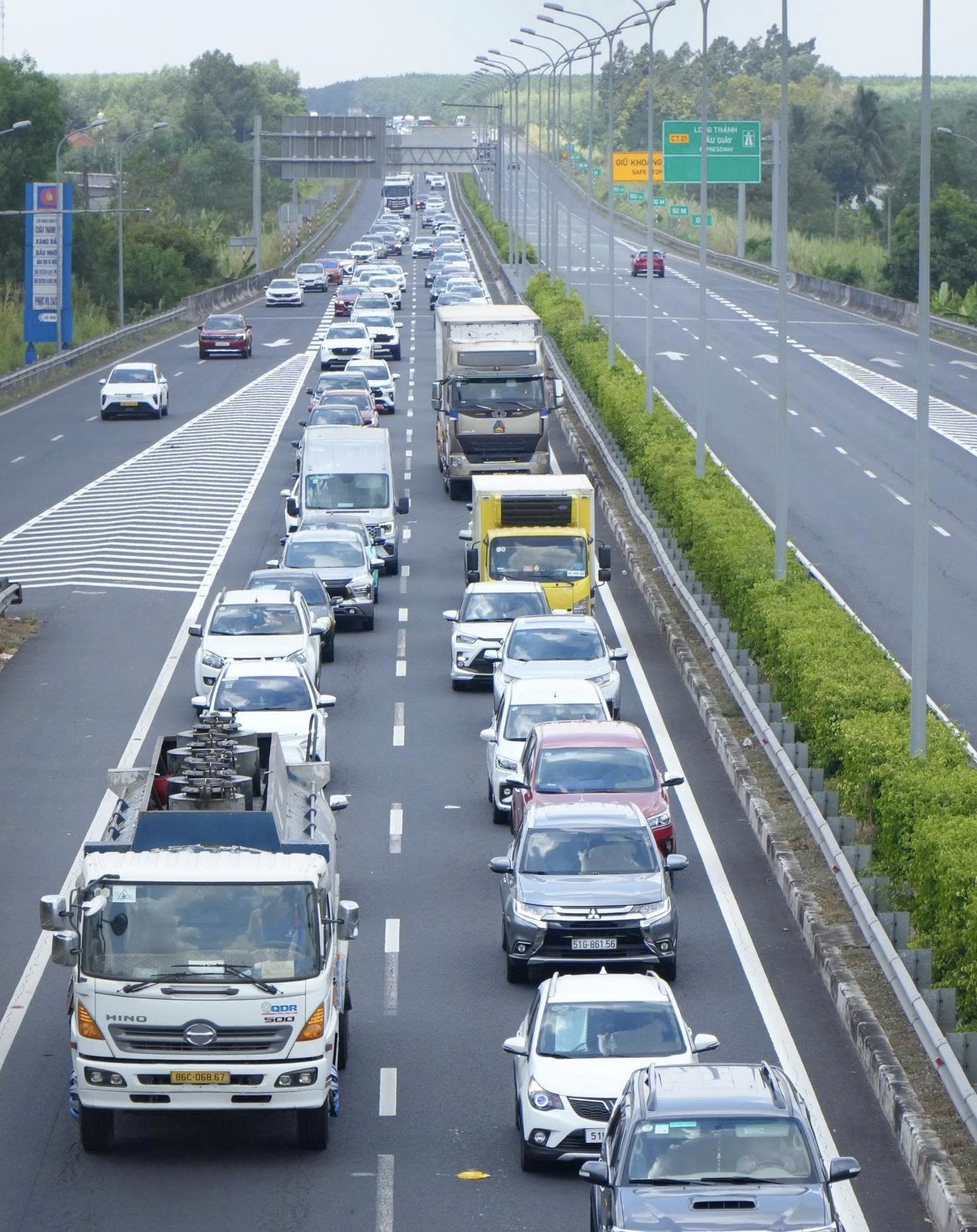Hàng xe kéo dài trên cao tốc TPHCM - Long Thành - Dầu Giây.