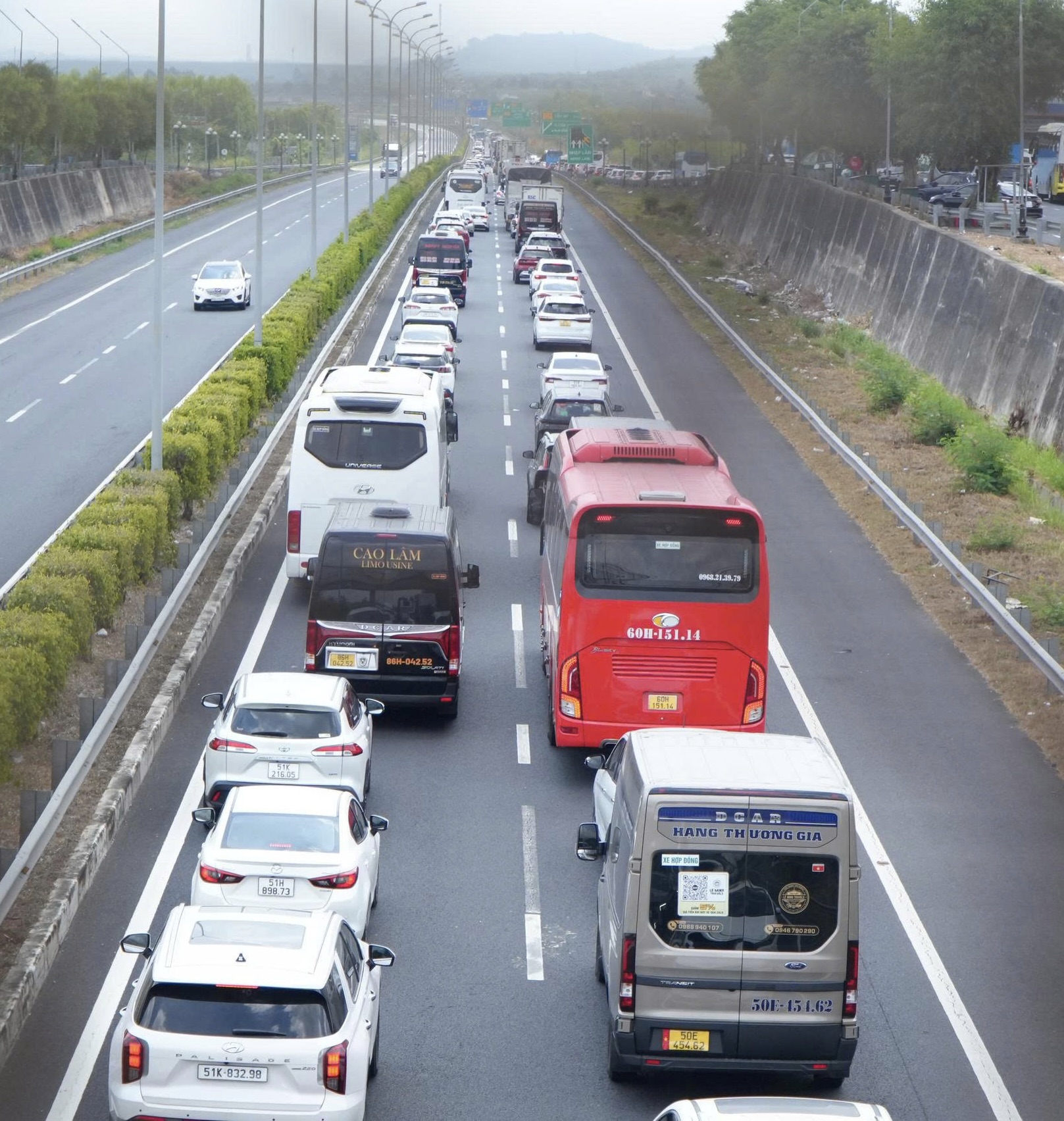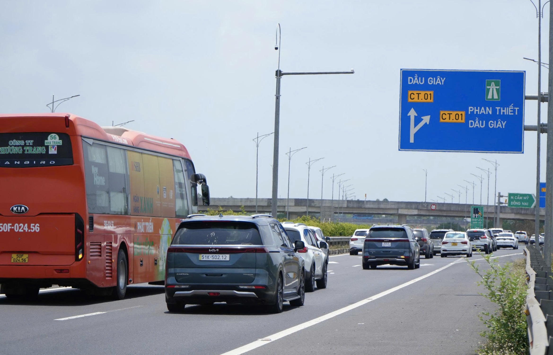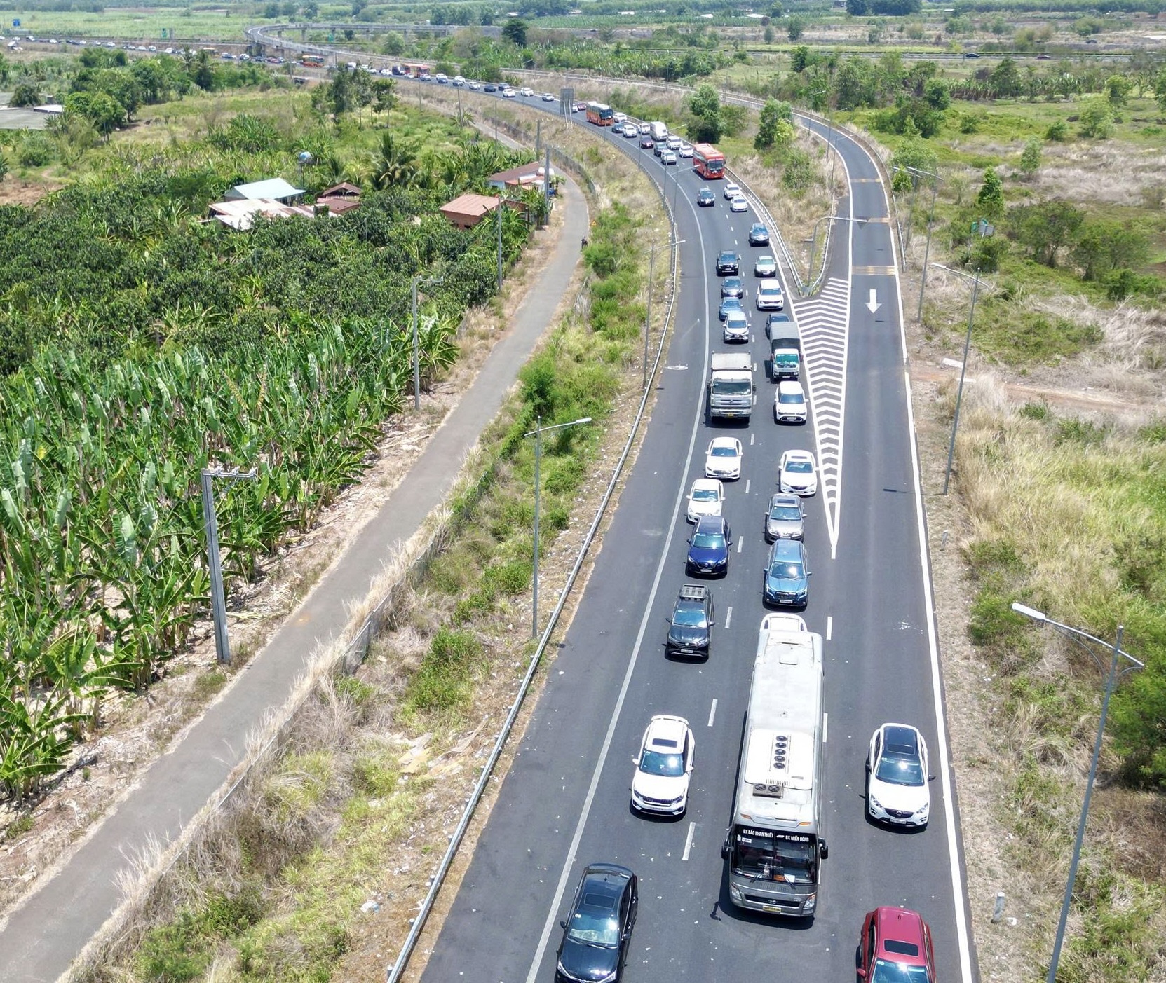 Tuyến cao tốc Phan Thiết – Dầu Giây cũng rơi vào tình trạng ùn ứ, dòng xe nối đuôi kéo dài, di chuyển .