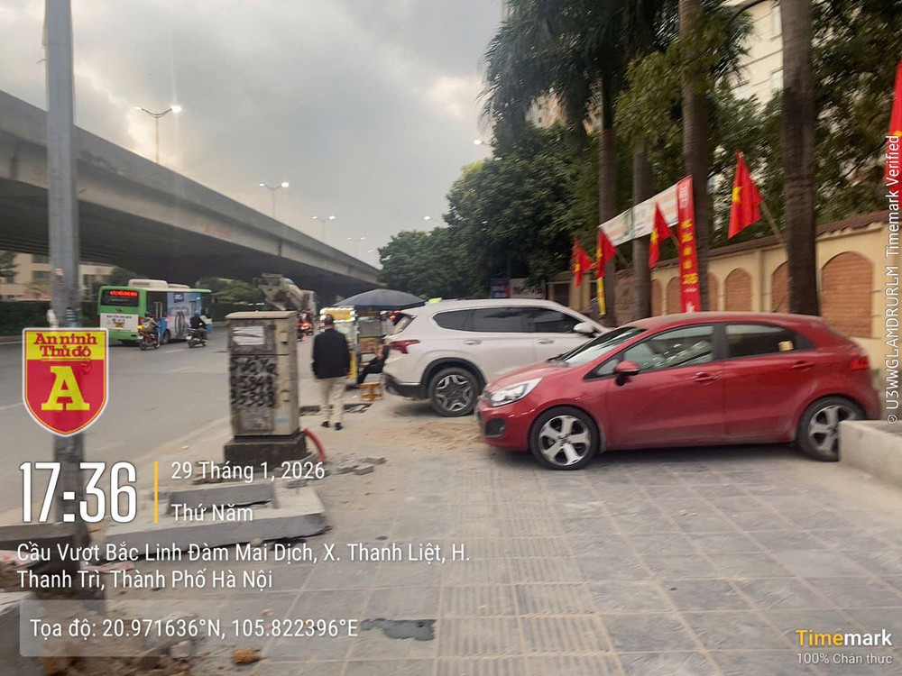 Ô tô ngang nhiên đỗ trên vỉa hè trên đường Nghiêm Xuân Yêm